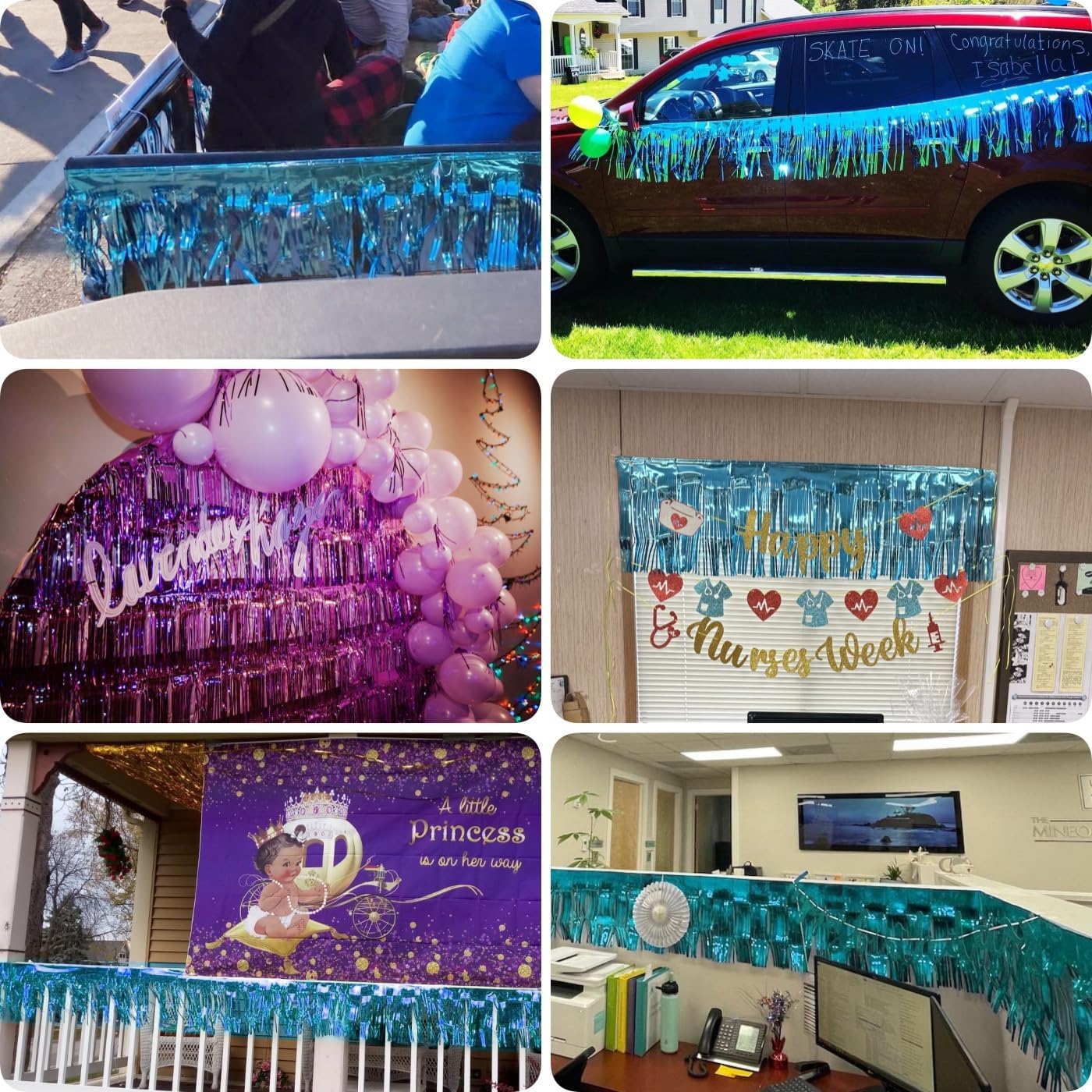 • Perfect for decorating a trailer for a parade floats, as table skirt, decor a backdrop or anywhere you want to add shimmer.