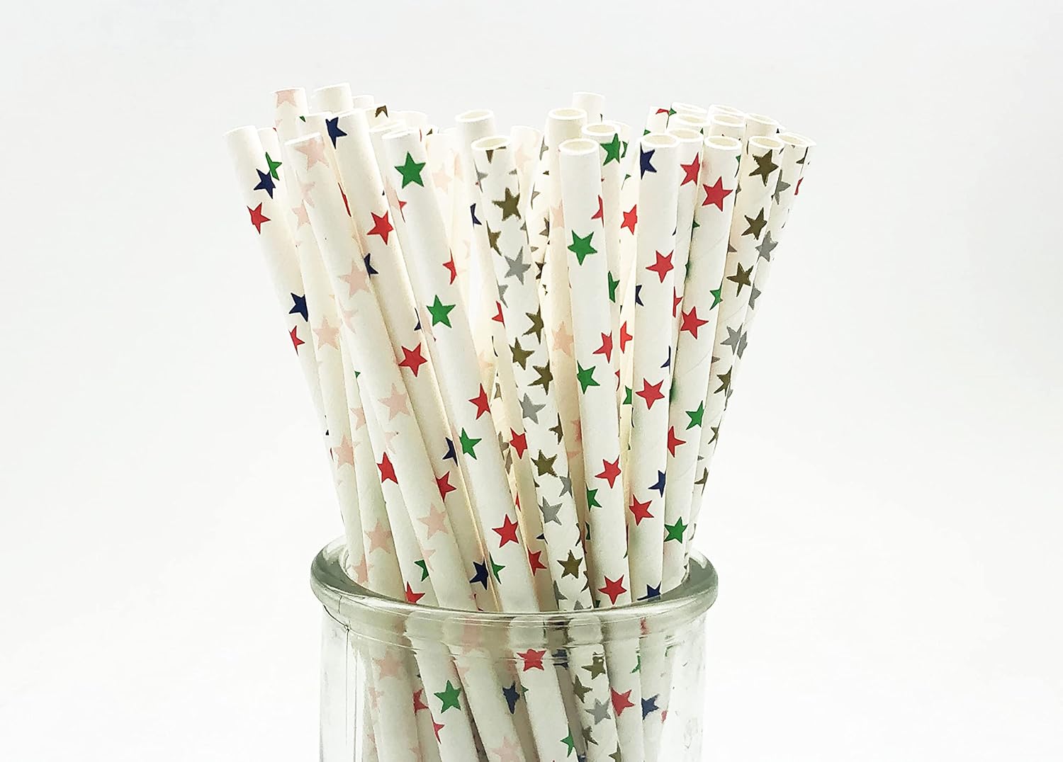 100 Pcs Colorful Disposable Straws, Star Drinking Straws, Rainbow Paper Straws for Juices, Shakes, Cocktail, Smoothies, Party Supplies (White)