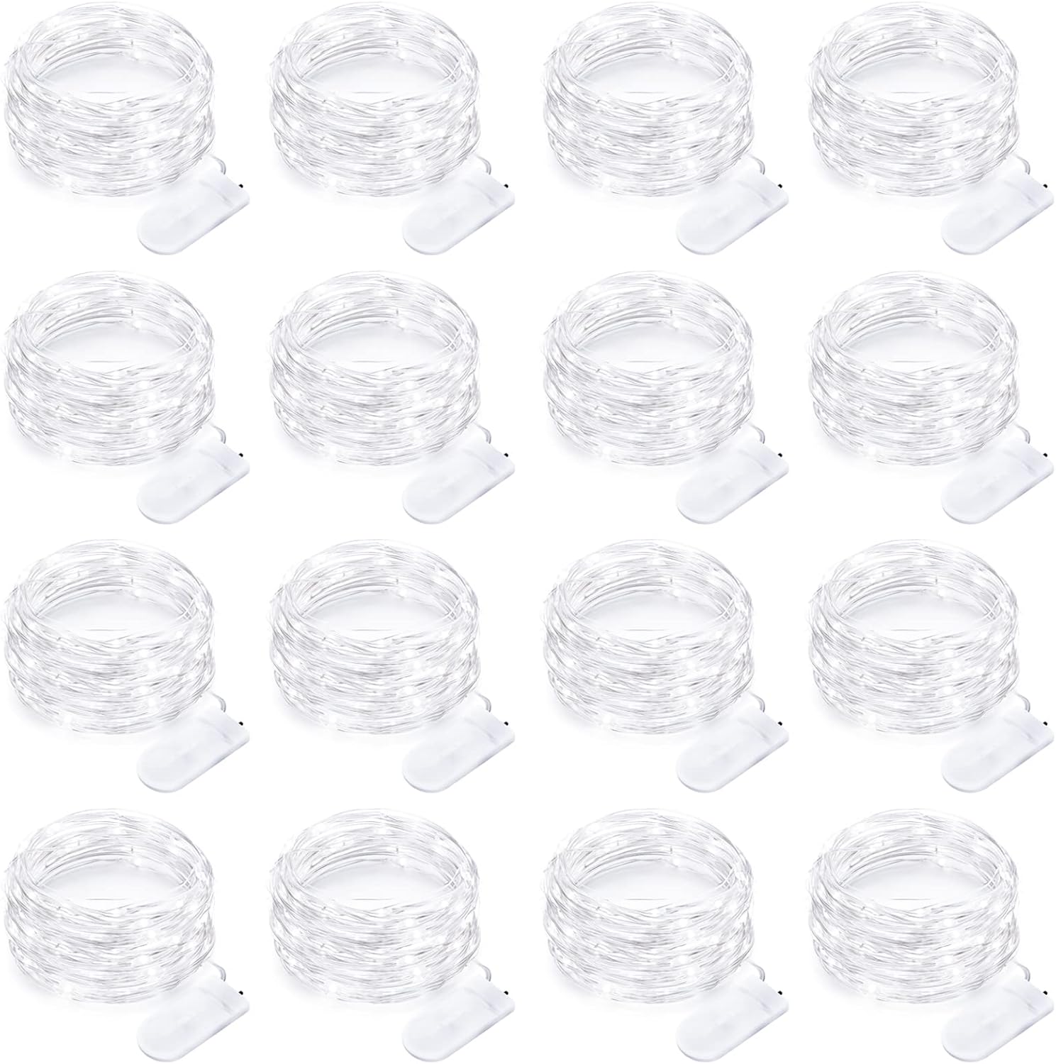 16 Pack Led Fairy Lights Battery Operated String Lights 10 Feet 30 LED Waterproof Twinkle Lights Mason Jar Lights Silver Wire Firefly Lights for Christmas Party Wedding Patio White