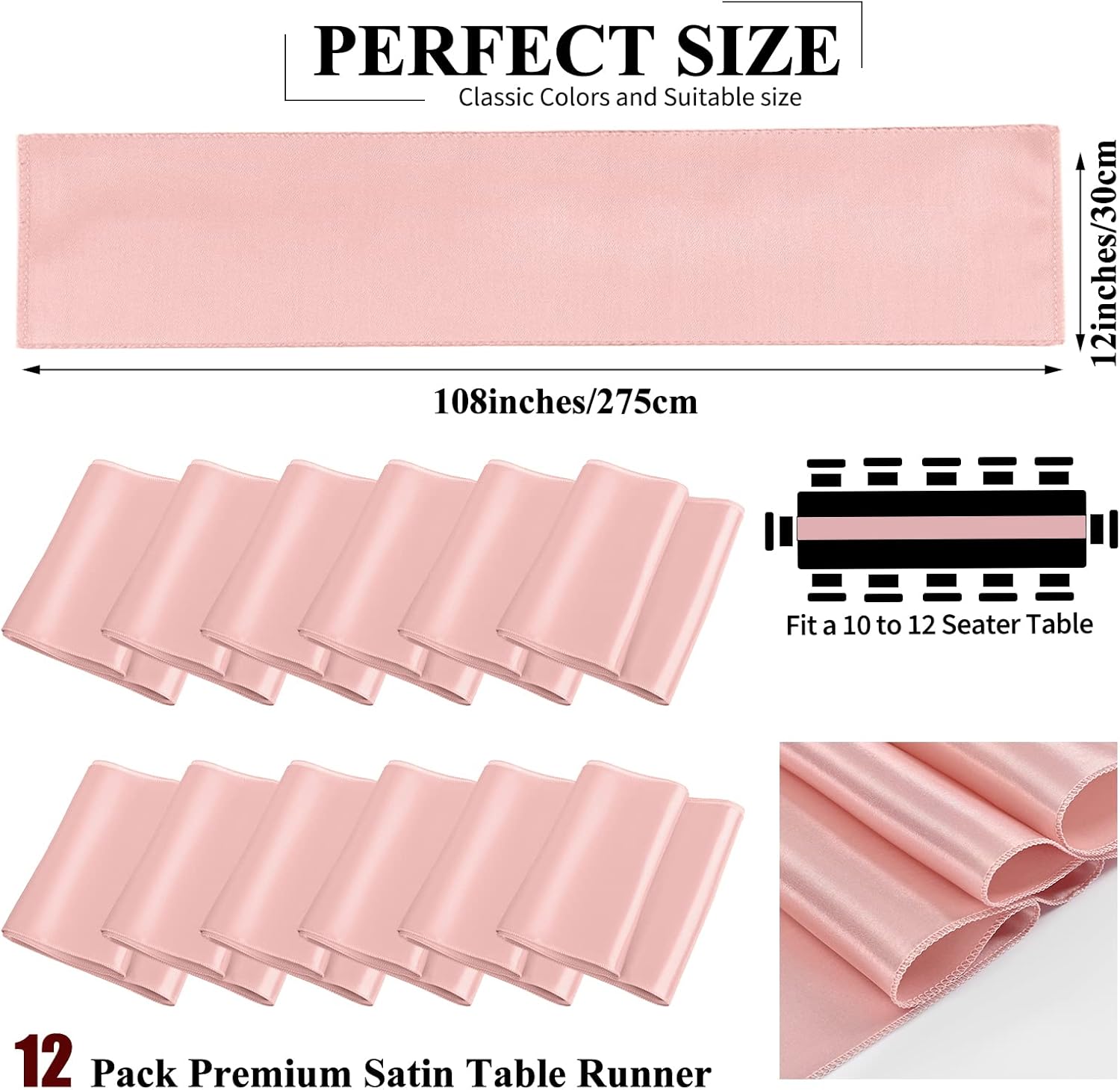 12 Pack Rose Gold Satin Table Runner,12 x 108 inch Long Premium Smooth Table Runner for Wedding, Banquets, Birthday, Party, Graduation, Engagements,Table Runners fit Rectangle and Round Table