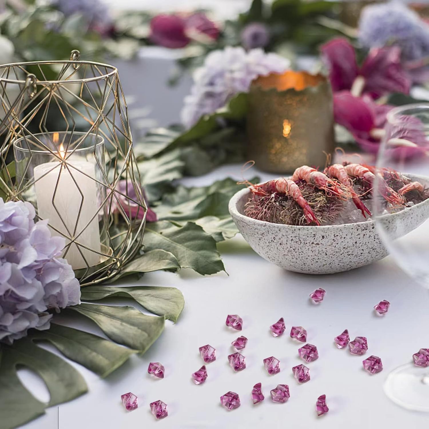 HappyFiller 15 OZ Burgundy Fake Ice Rocks Crystal Acrylic Gem Stone for Glass Vase Fillers,Candle Holder Decor, Wedding Centerpieces,Crafts,Dessert Table Decorative Scatter,Party,Home Accents
