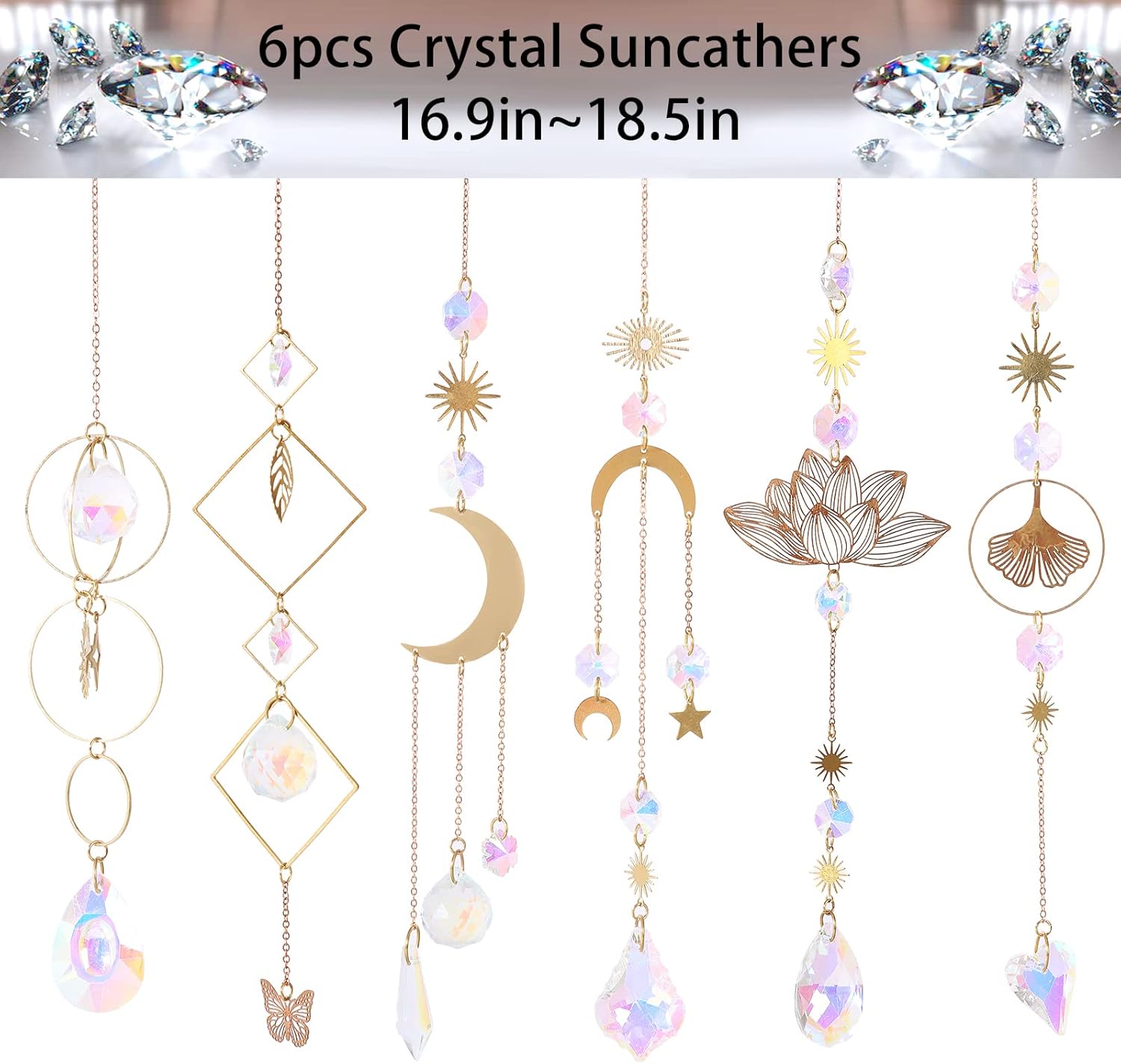 • Sun Catchers with Crystals:Window crystal sun pendant comes with 6pcs in different pendants,prisms will reflect and add lots of pretty colors into your room when the sunlight hits them just right,throwing lovely rainbow to your home decor,they are each unique and eye-catching,you can enjoy them when you pass by