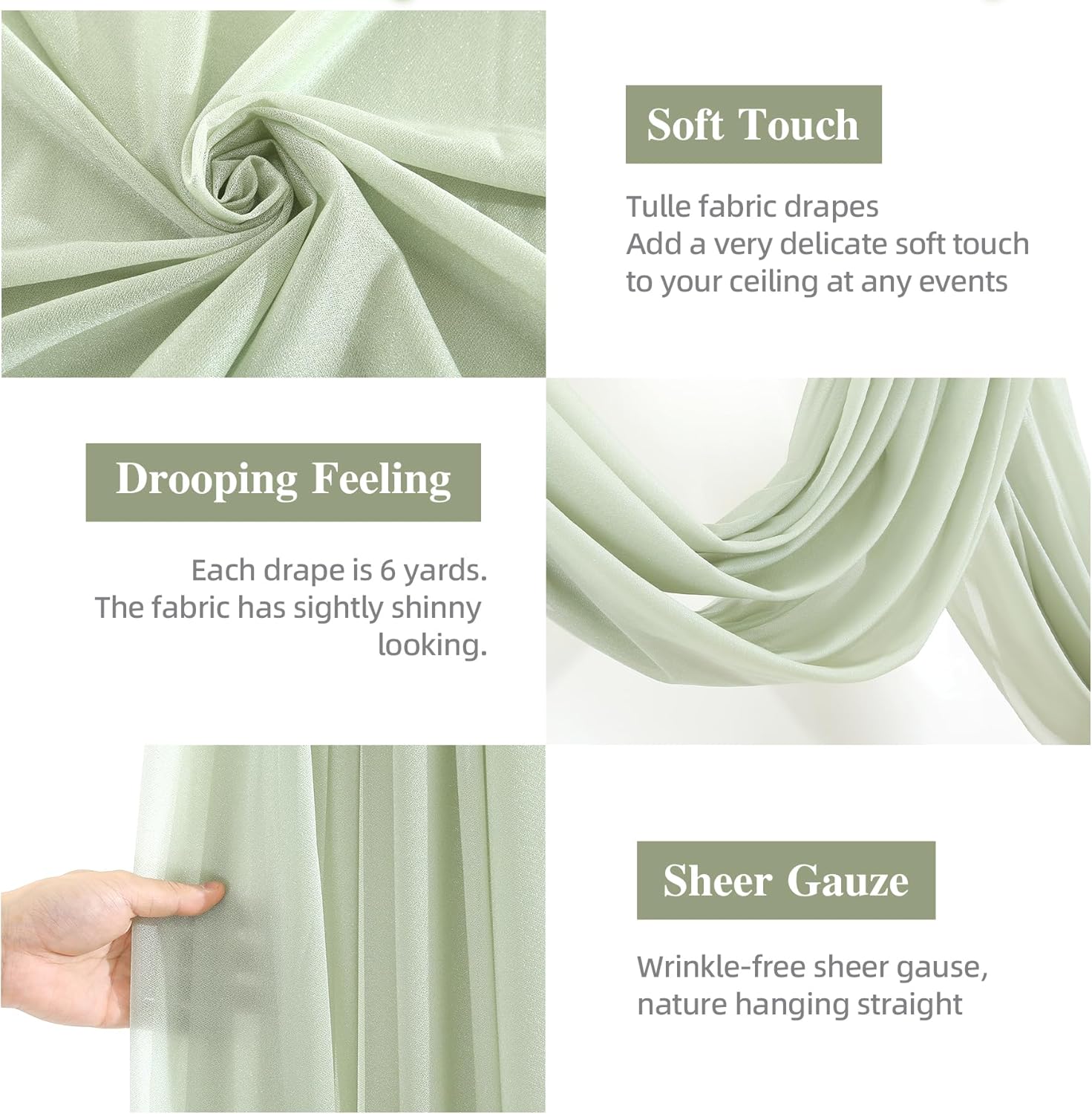 Wedding Arch Draping Fabric 2 Panels 19FT Sage Green Arch Drapes Sheer Backdrop Curtain for Wedding Ceremony Party Ceiling Decorations