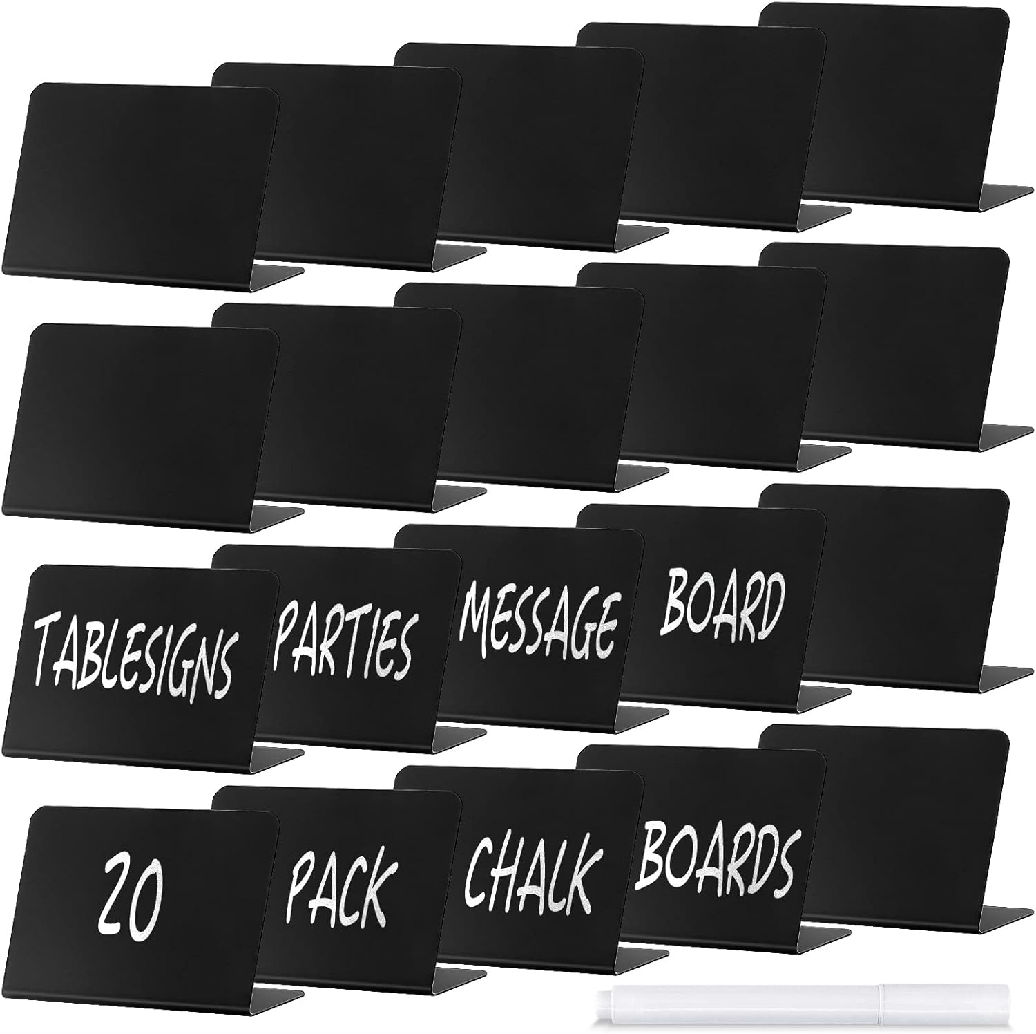 • MULTI-SCENE USE -- Total 20 pack of 4 x 3 inch table chalkboard signs with a white color erasable pen are enough for most of daily use needs. These small chalkboard tables are perfect for buffets, weddings, parties and other special events. As wedding signs, food chalkboard signs, table numbers, price tags, table reservation signs, food name tags, location cards, plant decoration signs, food labels, florists, events, cafes, bakeries, etc..