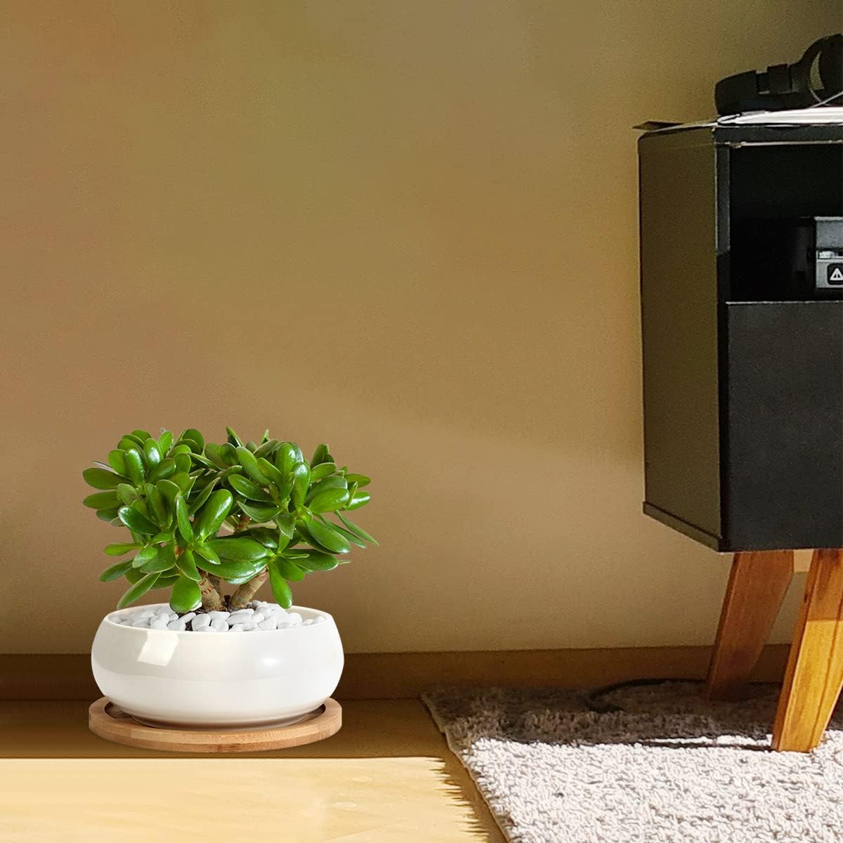 • Stylish & Functional Design: Crafted from high-quality white ceramic, these planters bring a sleek, modern touch to any décor. The bamboo trays add a natural, warm contrast while protecting your surfaces from water damage.