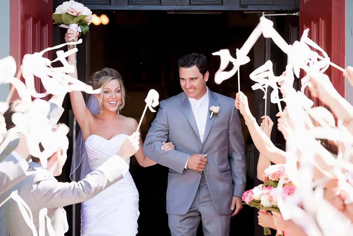 • This wedding lace wands was designed for a classic wedding, being white the symbol of purity and peace, and which also differs by the touch of white lace ribbons. Lace ribbon wands add a festive flair to the celebration and some photo opportunities at the send off moment