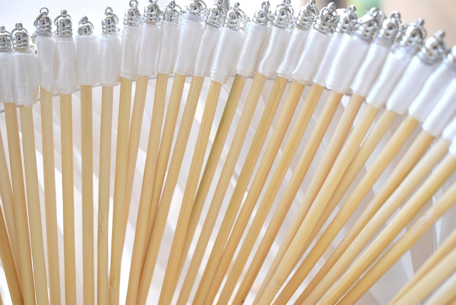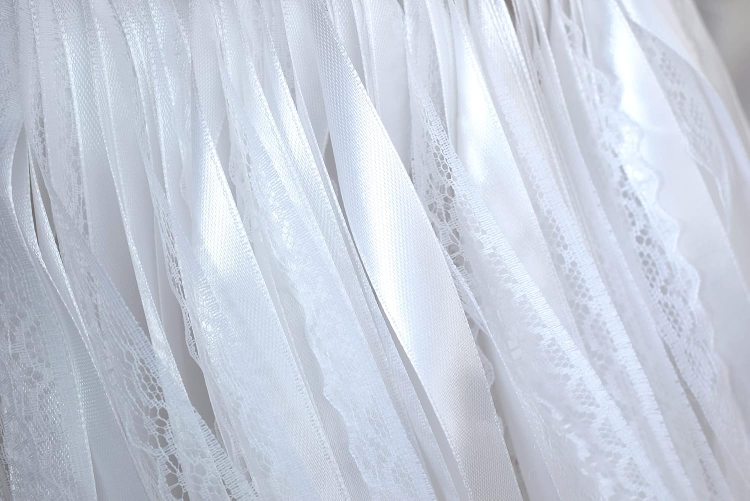 • White ribbon lace stick wands will definitely add charm to your wedding. Flowing pieces satin ribbon and lace (24") securely attached to a 12"dowel and accented with a silver bell. Well crafted wish wands with smooth stick, durable and comfortable to take with hands.
