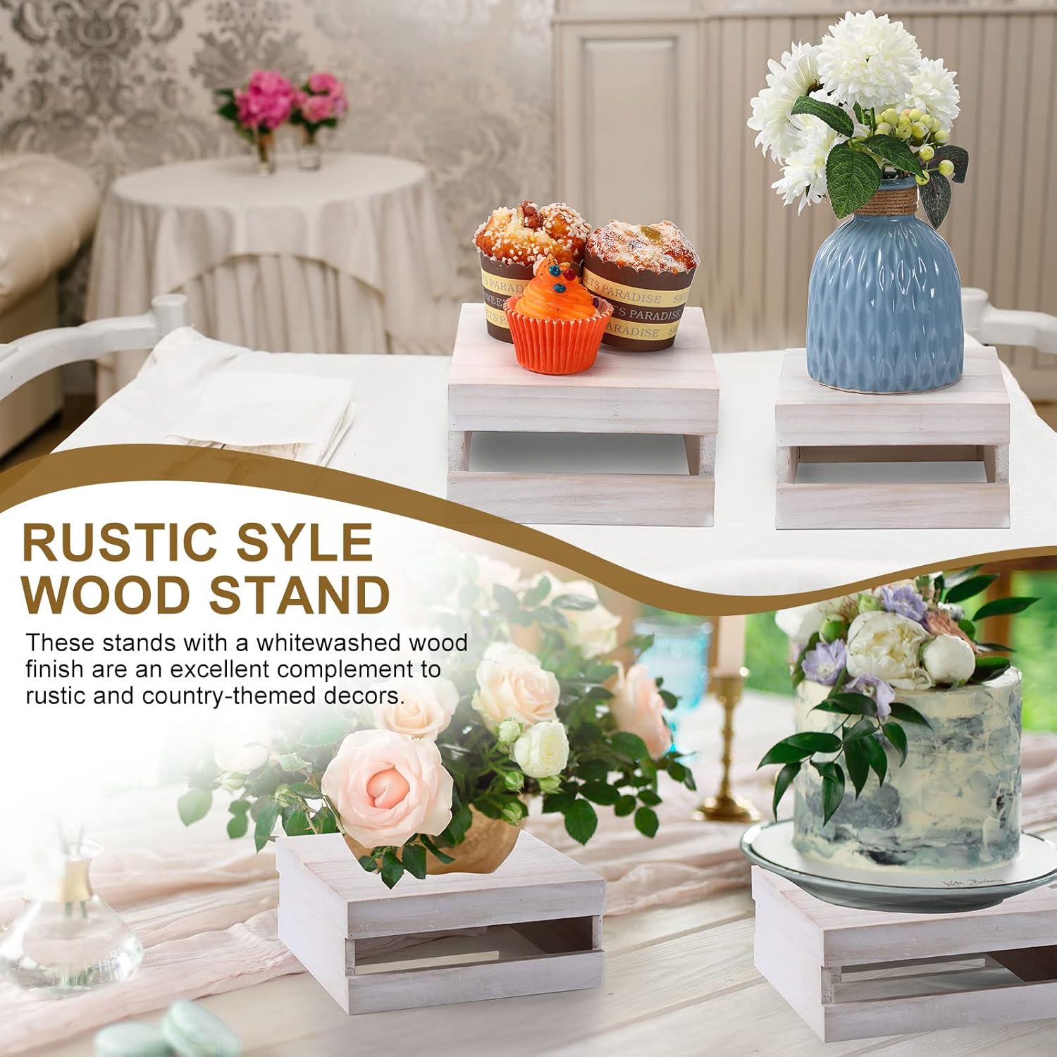 Sieral 4 Pieces Wood Cupcake Display Stand Decorative Dessert Appetizer Cake Stand Risers Wooden Crate Rustic Cake Risers for Storage for Party Christmas Halloween Wedding Decor(Vintage White)