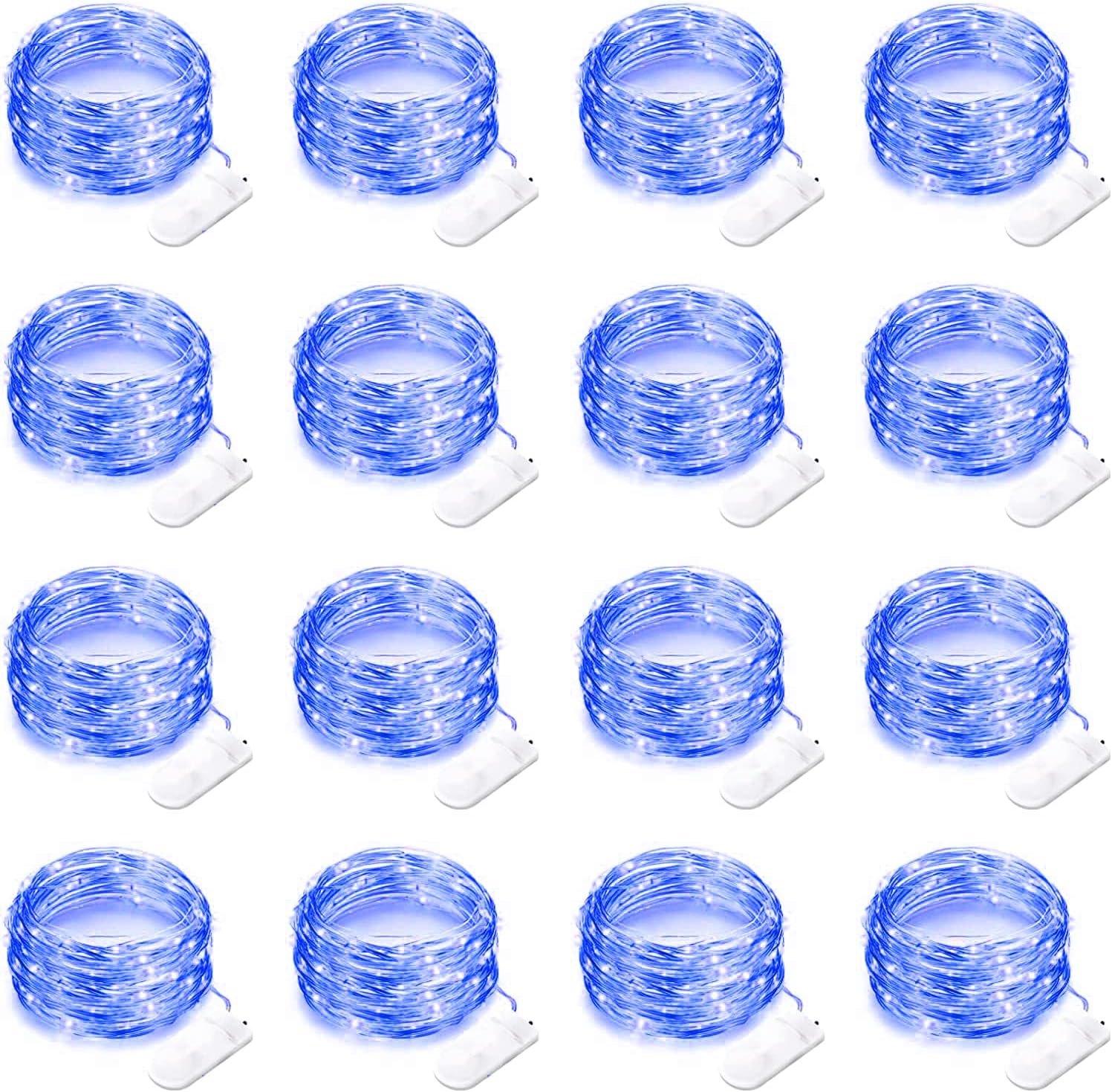 16 Pack Led Fairy Lights Battery Operated String Lights 10 Feet 30 LED Waterproof Twinkle Lights Mason Jar Lights Silver Wire Firefly Lights for Christmas Party Wedding Patio (Blue)