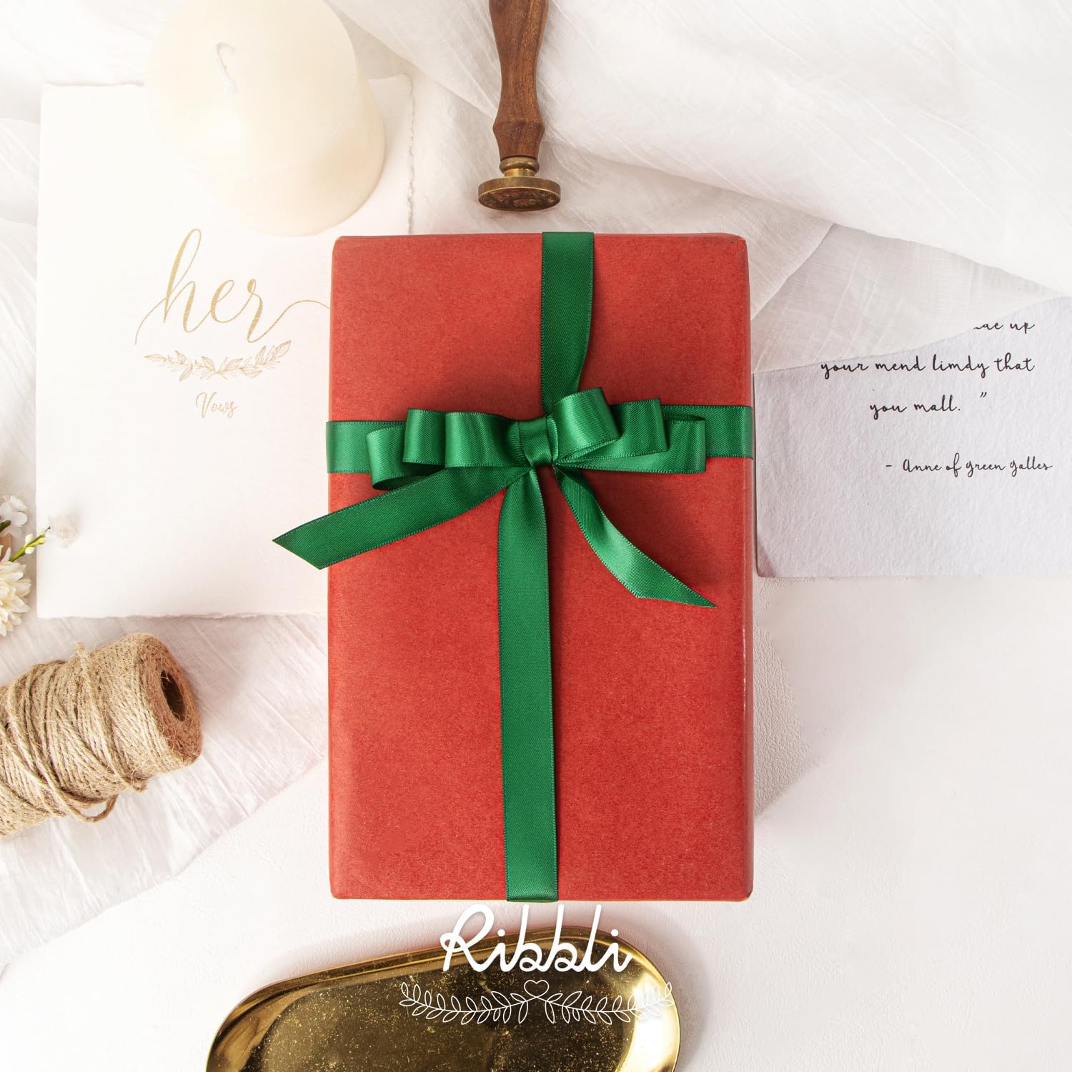 Ribbli Forest Green Satin Ribbon 5/8 inch x Continuous 25 Yards,Double Faced Satin Use for Craft, Gift Wrapping, Christmas Ornaments, Hair Bows, Bouquet Bows