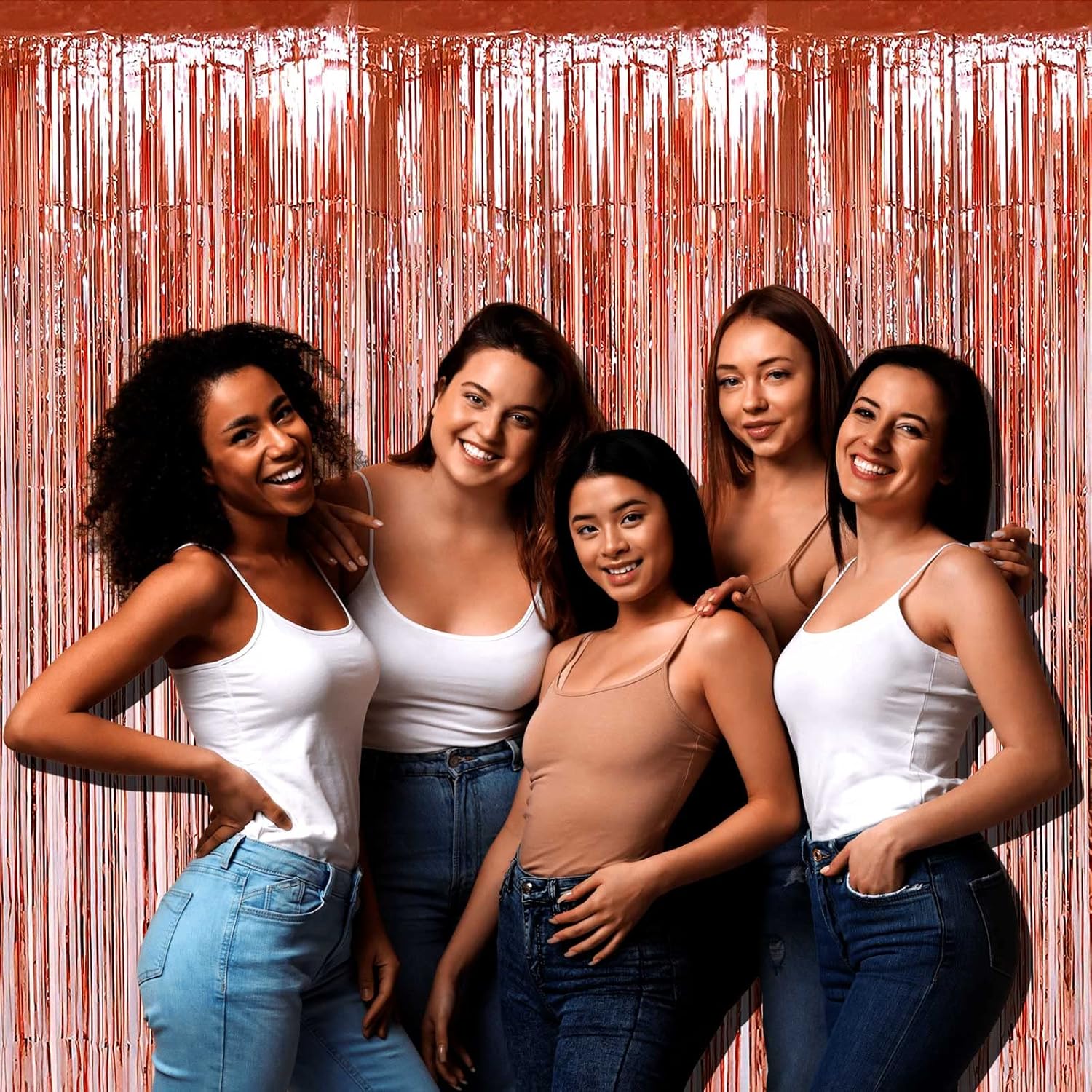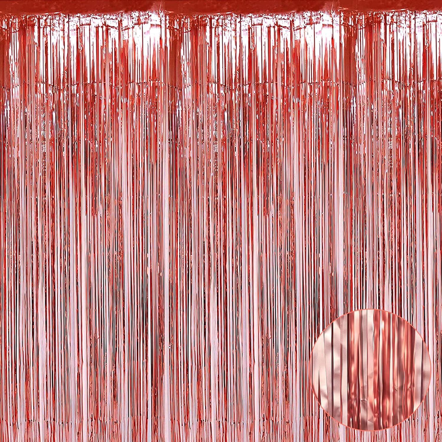 4 Pack Rose Gold Foil Fringe Curtain Backdrop, 3.28Ft x 9.84Ft Metallic Tinsel Foil Fringe Streamers Curtains for Party,