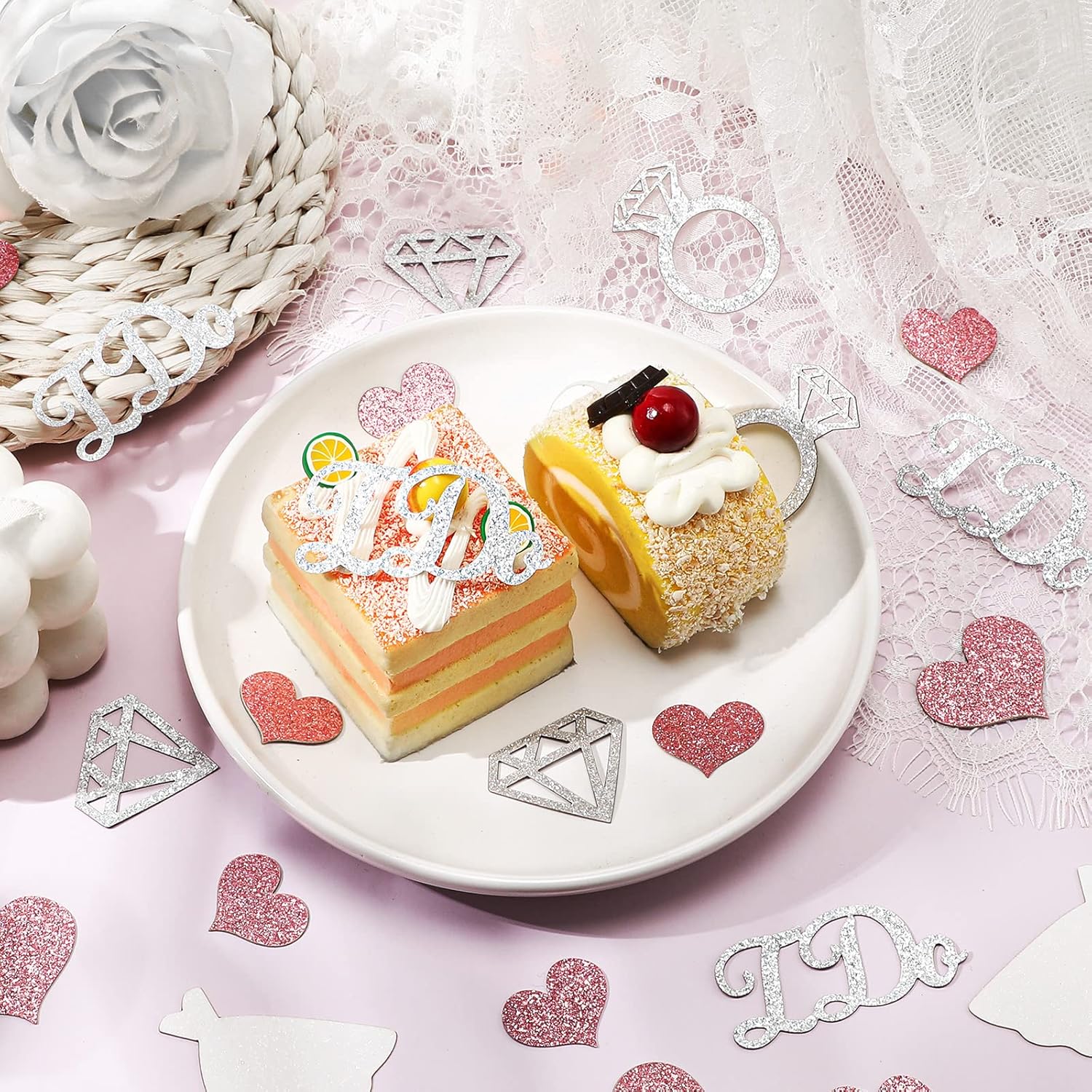 Zhanmai 240 Pieces Wedding Table Confetti, Glitter Rose Gold Heart Silver Diamond Ring I Do Scatter Party Table Decoration for Bridal Shower Engagement Bachelorette Party Decor