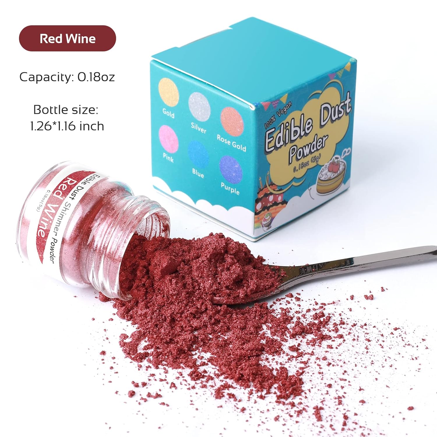 Jelife Red Wine Edible Luster Dust - 5 Grams Food Grade Cake Dust Shimmer Powdered, Edible Metallic Powder Food Coloring for Cake Decorating, Chocolates, Fondant, Drinks, Painting & More, Vegan
