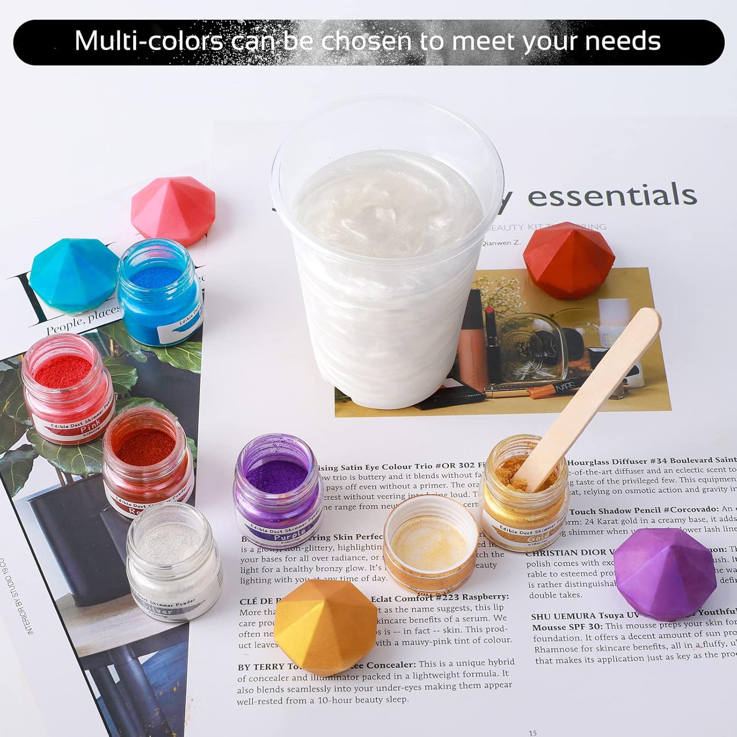 • 【12 Metallic Luster Dust Colors Are Available】Includes: Gold, silver, rose-gold, black, pink, blue, purple, red, white, burgundy, brown, green. 5 Grams Each Container