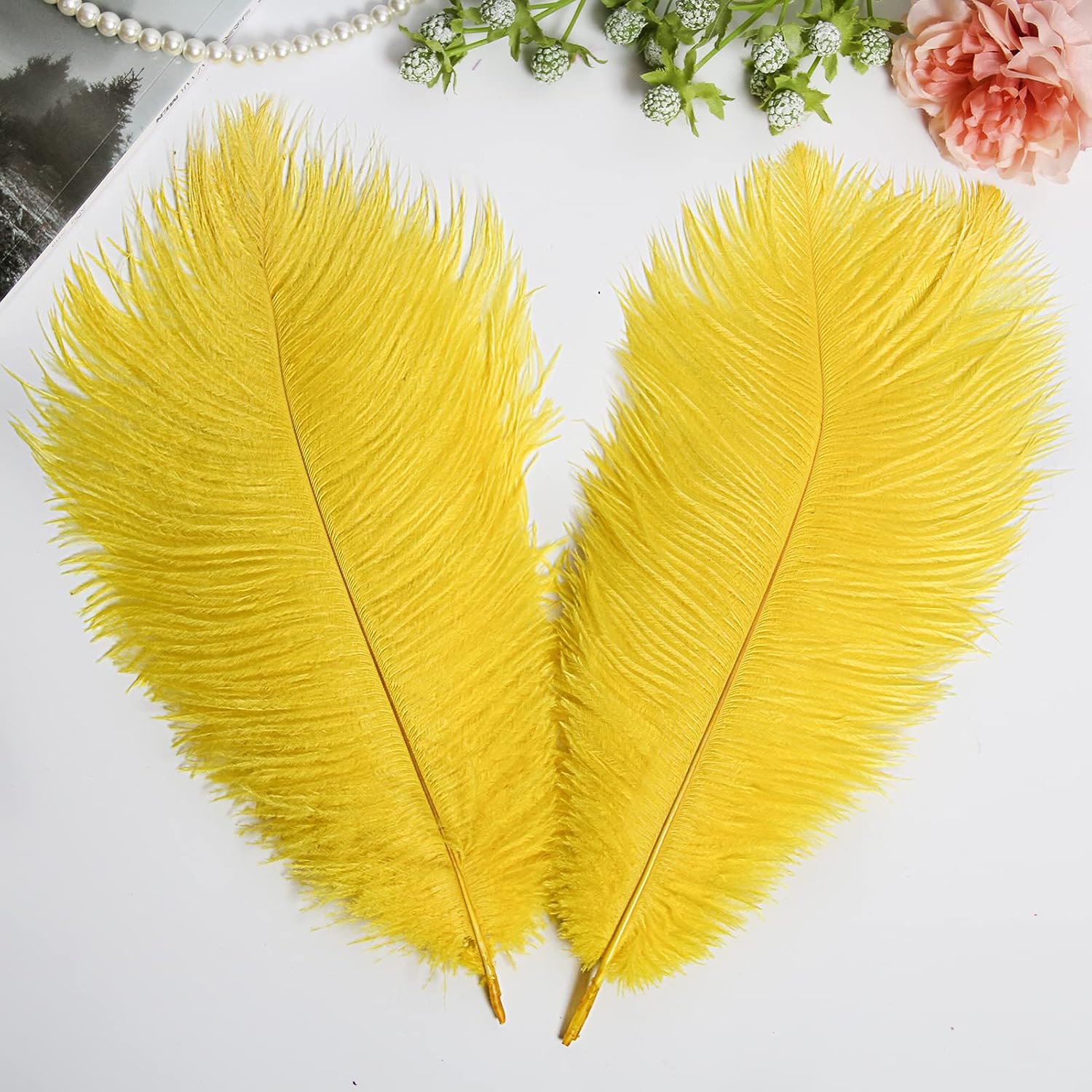 THARAHT Yellow Ostrich Feathers 24pcs Natural Bulk 10-12Inch 25cm-30cm for Crafts Wedding Party Centerpieces Halloween and Home Decoration Feathers