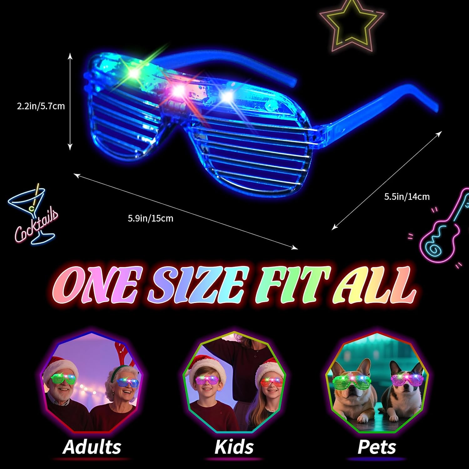 • ✨Vibrant 5-Color Variety & Bulk Pack – Includes 108 LED glow glasses in 6 eye-catching colors (red, green, purple, blue, pink) for group events, party favors, or sharing. Endless style options to match any theme, from birthdays to festivals, ensuring everyone stands out in the crowd.