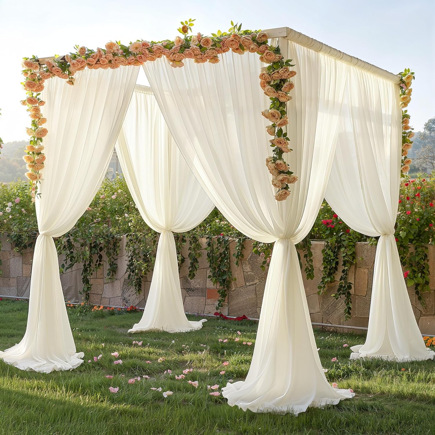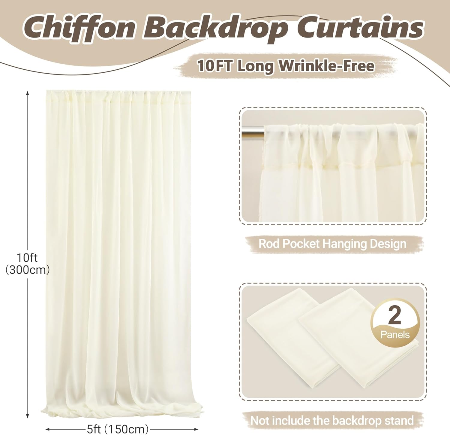 10ft x 10ft Ivory Backdrop Curtain Drapes, Wrinkle-Free Sheer Chiffon Fabric Photo Background Panels for Wedding Arch Party Ceremony Stage Photography Decorations