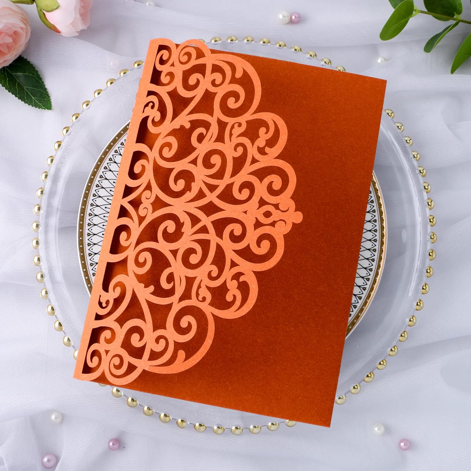 PONATIA 20 PCS Laser Cut Invitations Pockets, Terracotta Wedding Invitations with Envelopes for Wedding Party Bridal Shower Engagement Birthday Invite,Autumn Wedding Invitations