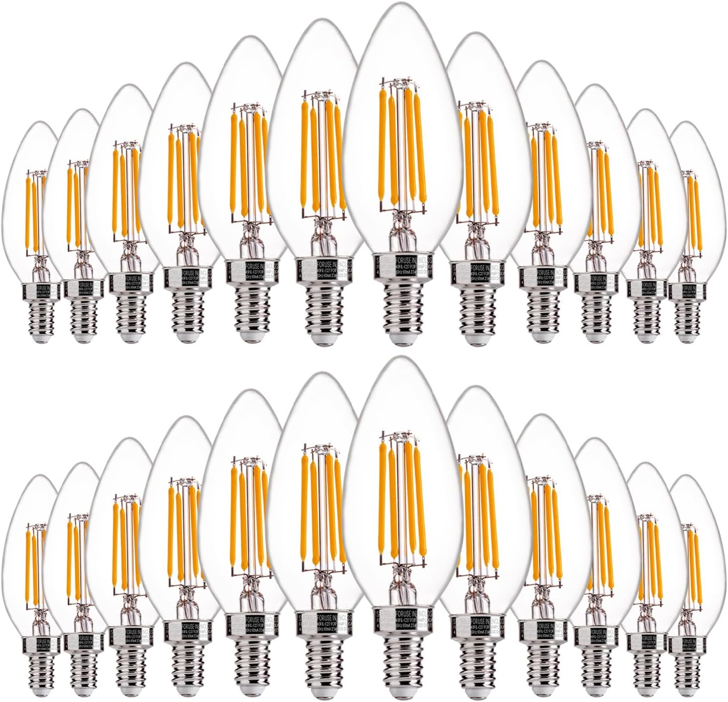FLSNT 24 Pack LED Candelabra Bulbs 60W Equivalent, B11 Dimmable LED Chandelier Light Bulbs, E12 Base, 2700K Soft White