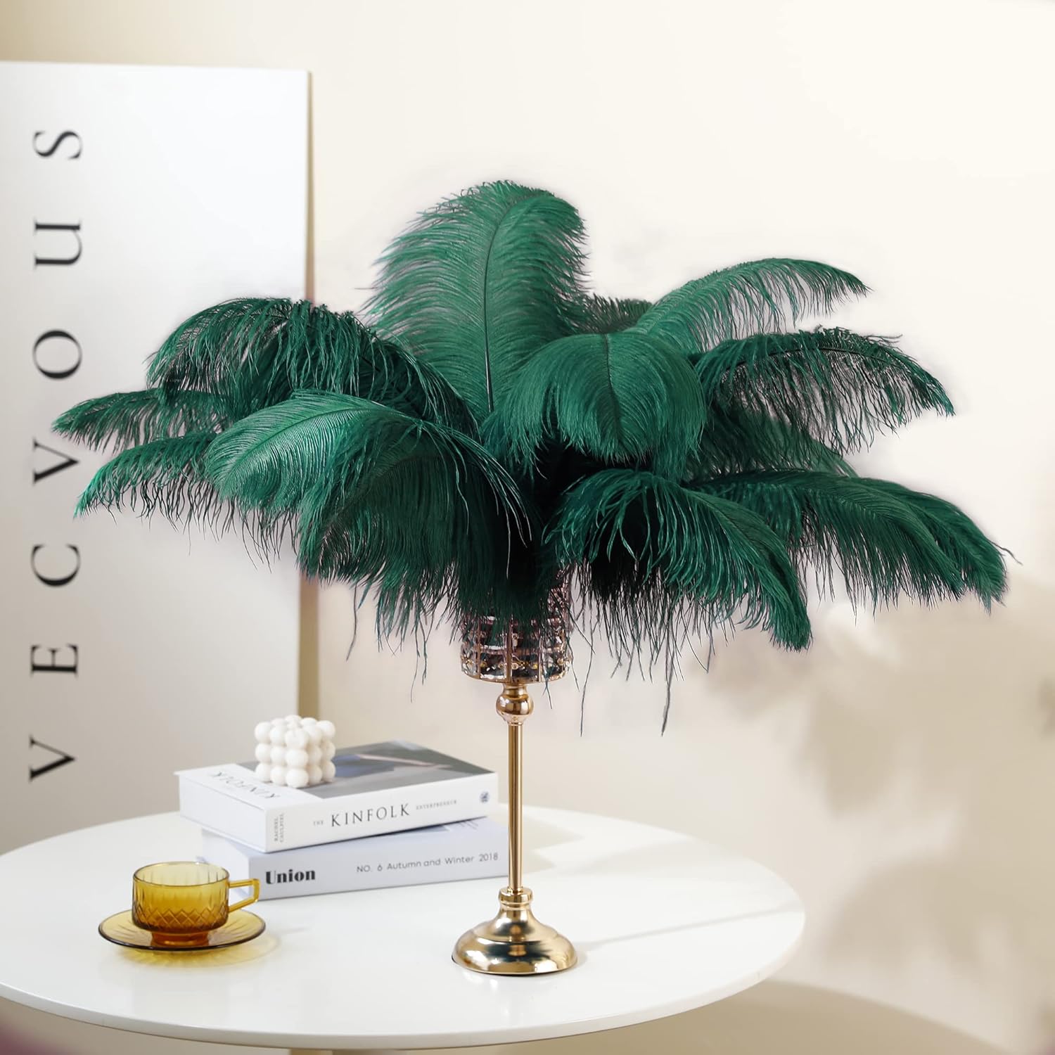 Larryhot Green Large Ostrich Feathers - 10pcs 16-18 inch Feathers for Vase and Wedding Party,Christmas Decor(Blackish Green)