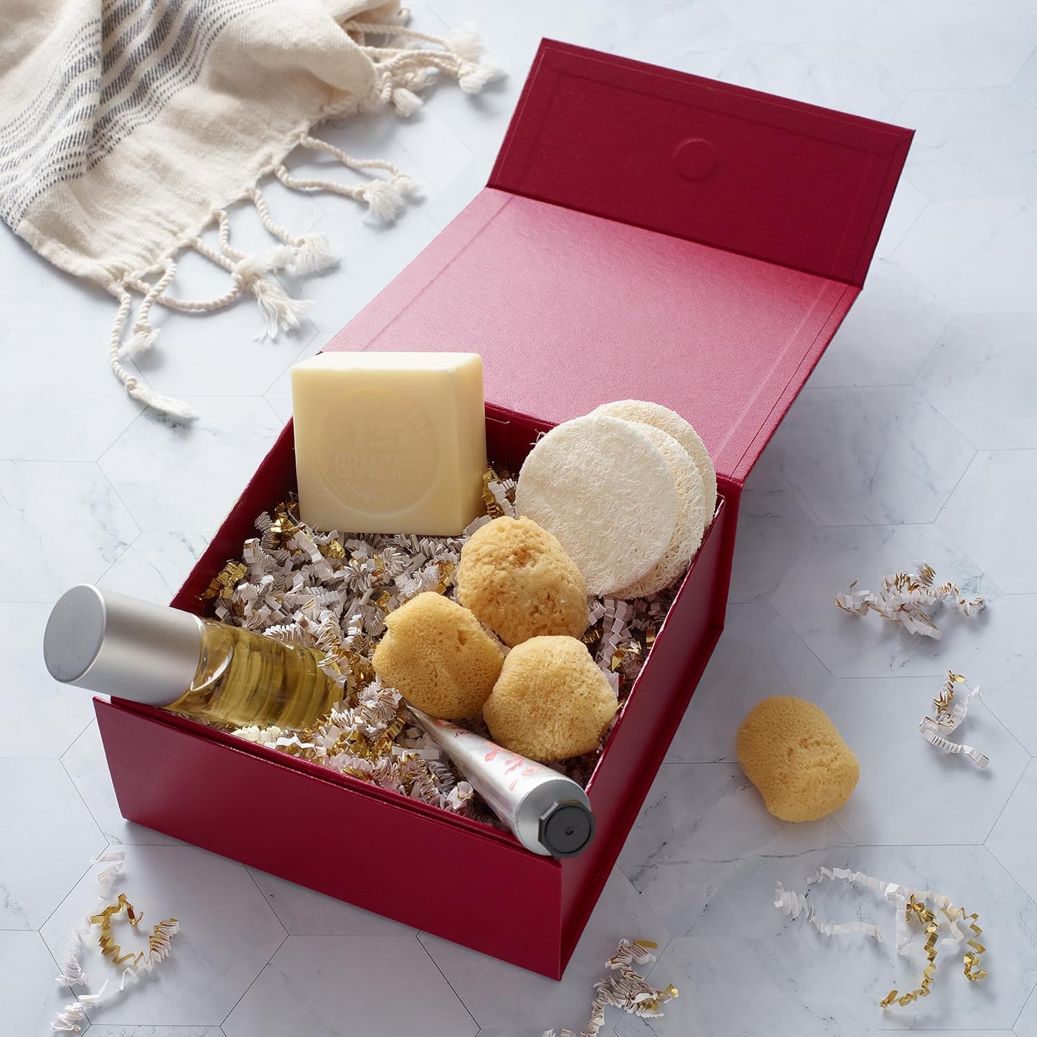CECOBOX - Gift Boxes with Lids for Presents 6"x6"x2.75" - Matte, Collapsible Magnetic Closure Gift Box - Groomsmen & Bridesmaid Proposal Boxes, Wedding, PR, Birthdays, Holidays (Scarlet Leatherette)
