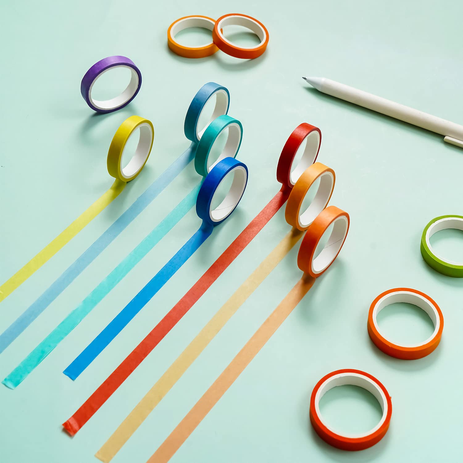 • 🌈Washi tape set: 0.3 inch(8mm) wide x 10 feet(3m) long, 60 colors, this casual washing tape adds color and vitality to the pasted items, making daily life more interesting. 60 rolls includes red, orange, yellow, green, cyan, blue, purple and more rainbow colors.