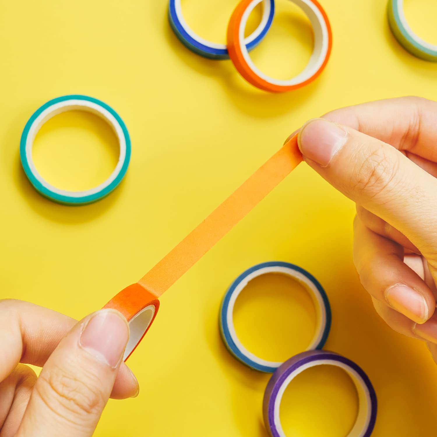 • 🌈Colored masking tapes are made of washi paper. Because they are detachable, they can be reused, can be torn off and re-attached, leaving no traces. The adhesive is also very good. it will not leave any glue stains! you can even write on the tapes.