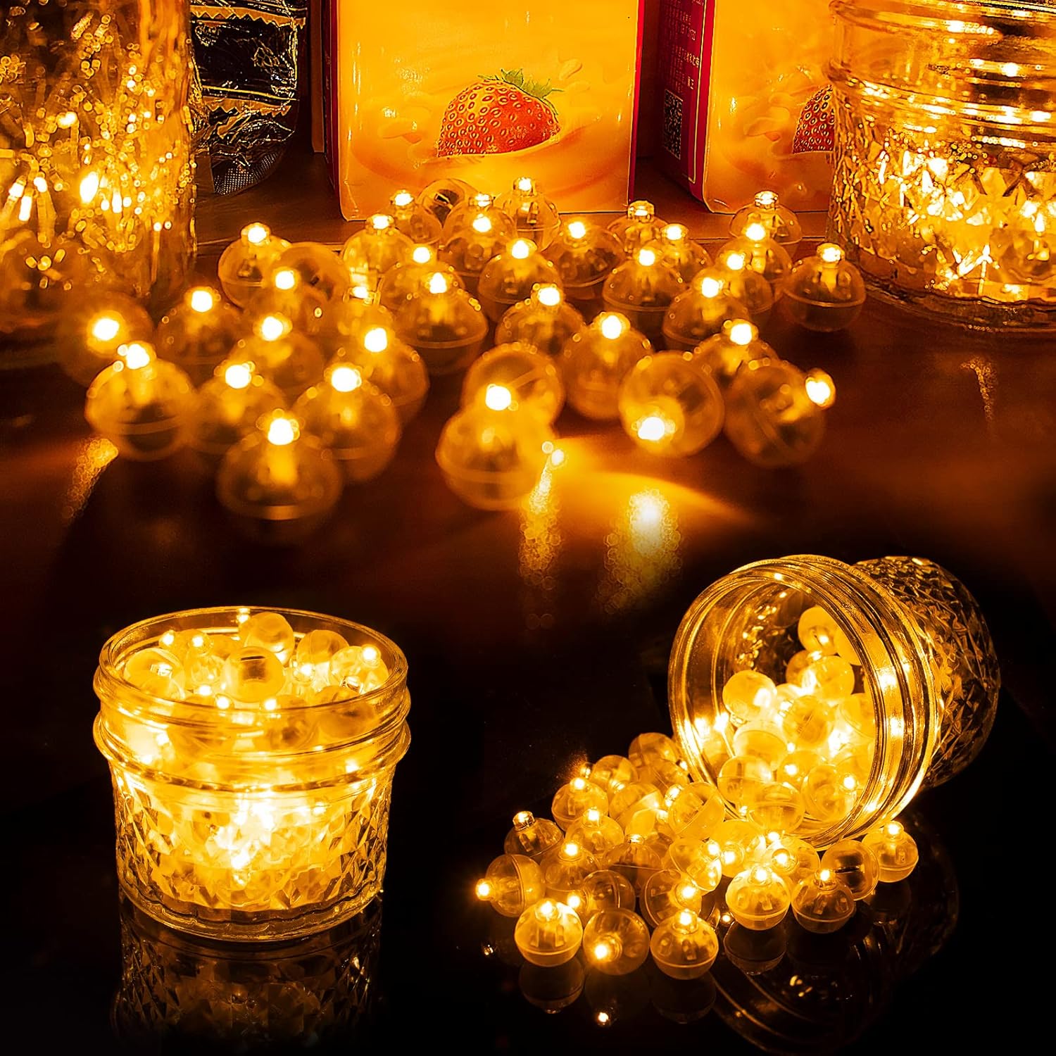 • 【Waterproof】-- Can be used in water,vases,pools,crafts,ice cubes,snowman and is suitable for any occasion.Simply remove the insulation film before placing them in balloons,paper lanterns,bottles,or any other centerpieces.