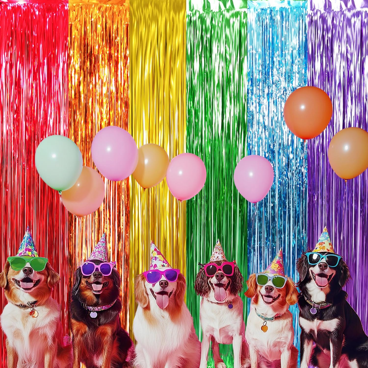 GOER 3.2 ft x 8.2 ft Metallic Tinsel Foil Fringe Curtains Party Photo Backdrop Party Streamers for Birthday,Graduation,New Year Eve Decorations Wedding Decor (4 Packs,Rainbow Colors)
