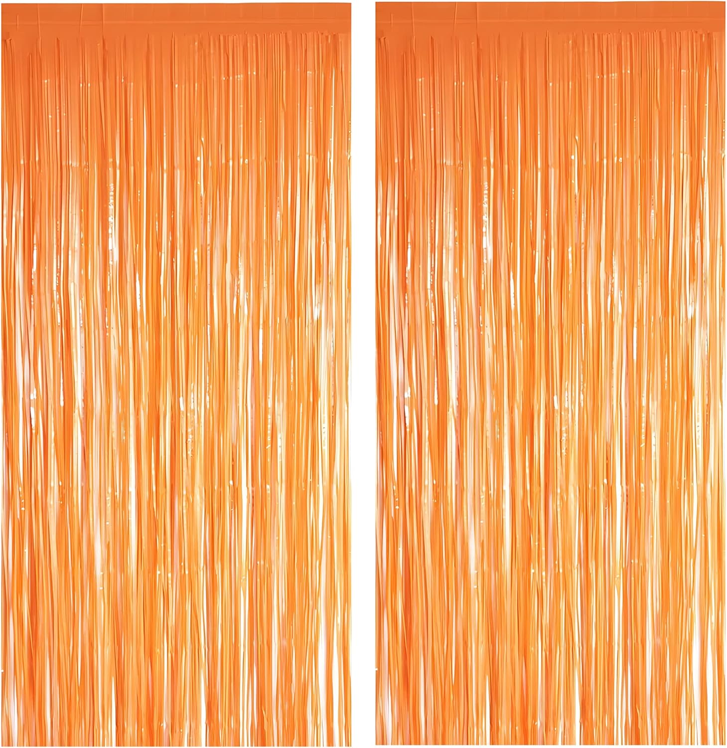 Orange Tinsel Curtain Party Backdrop - GREATRIL Foil Fringe Curtain Party Streamers for Fall/Thanksgiving Day/Birthdays/Doorway/Easter/Coco Theme/Day of The Dead Party Decorations 2 Packs