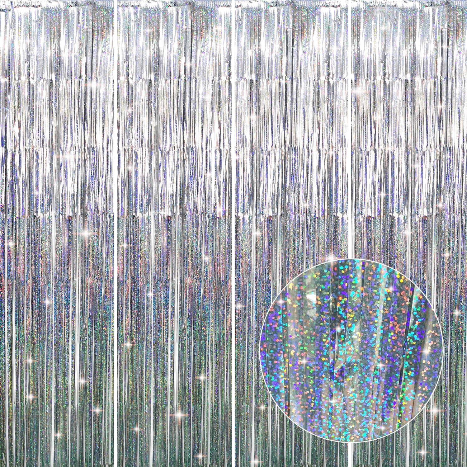 • Package Includes:4 pack shiny silver foil fringe curtains,3.2 ft x 8.2 ft each,suitable for hanging on a door or coverage a wall fully