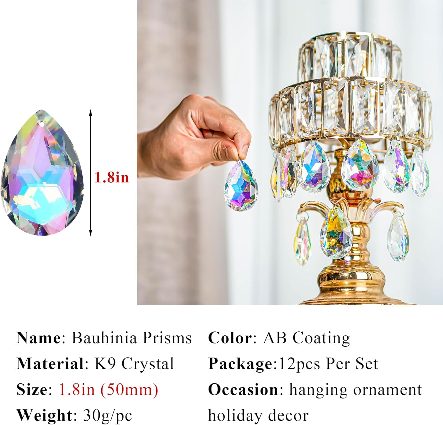 12 Pieces 50mm Crystal Prisms Chandelier Colorful Bauhinia Ornament Pendants Rainbow Maker Hanging Prisms for Wedding Party Tree Garlands Decoration DIY Jewelry