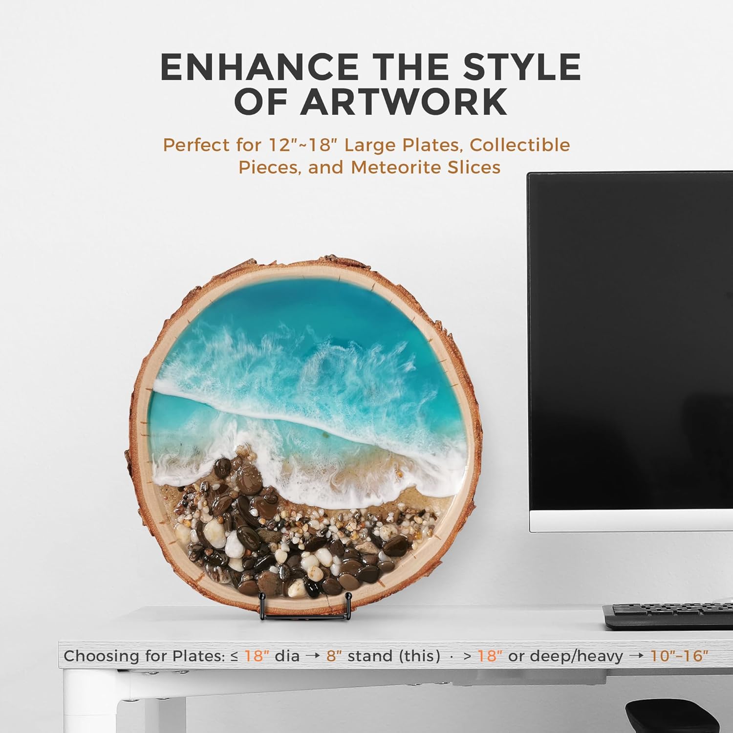 • CHOOSE YOUR LARGE STAND: - 8 inch plate stand fits items of 9″ ~ 24″ Height / Diameter, Lip depth: 2" with a perfect 10° tilt angle design, and 3.75" widened design to hold heavy and thicker artworks, frames and plates up to 10 pounds.