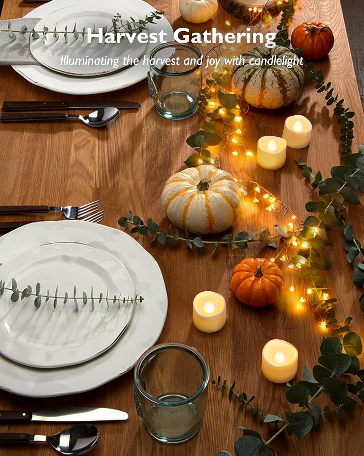 • VALUE SET: 48 battery-operated tea lights [warm white glow, ivory base] with pre-installed CR2032 batteries. Each tea light offers 200+ hours of glow, ensuring they last through your wedding/party/holidays