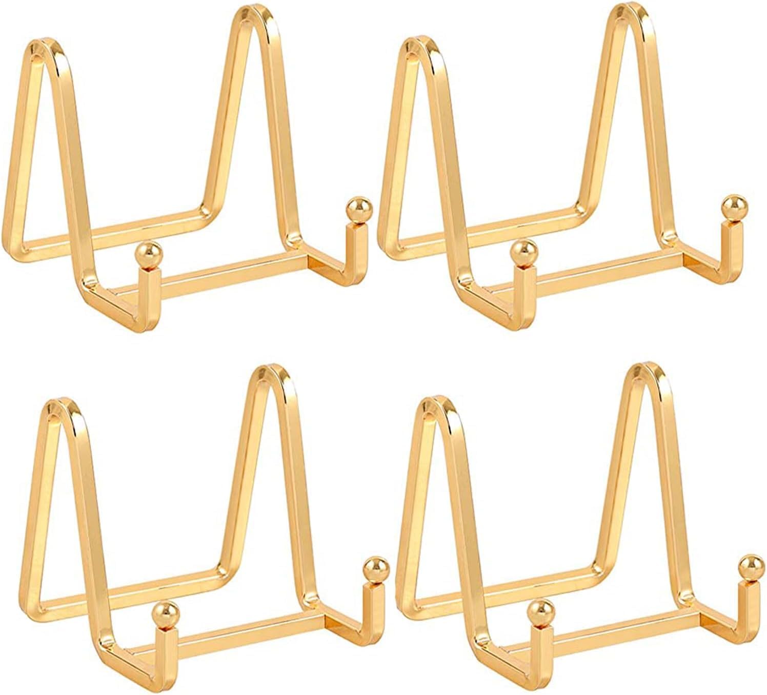 Plate Holder Easel Display Stand - 3 inch Metal Plate Stands for Display - Tabletop Picture Stand - Gold Iron Easels for Display Pictures | Photo Frames | Book | Decorative Plates | Plaque - 4 Pack