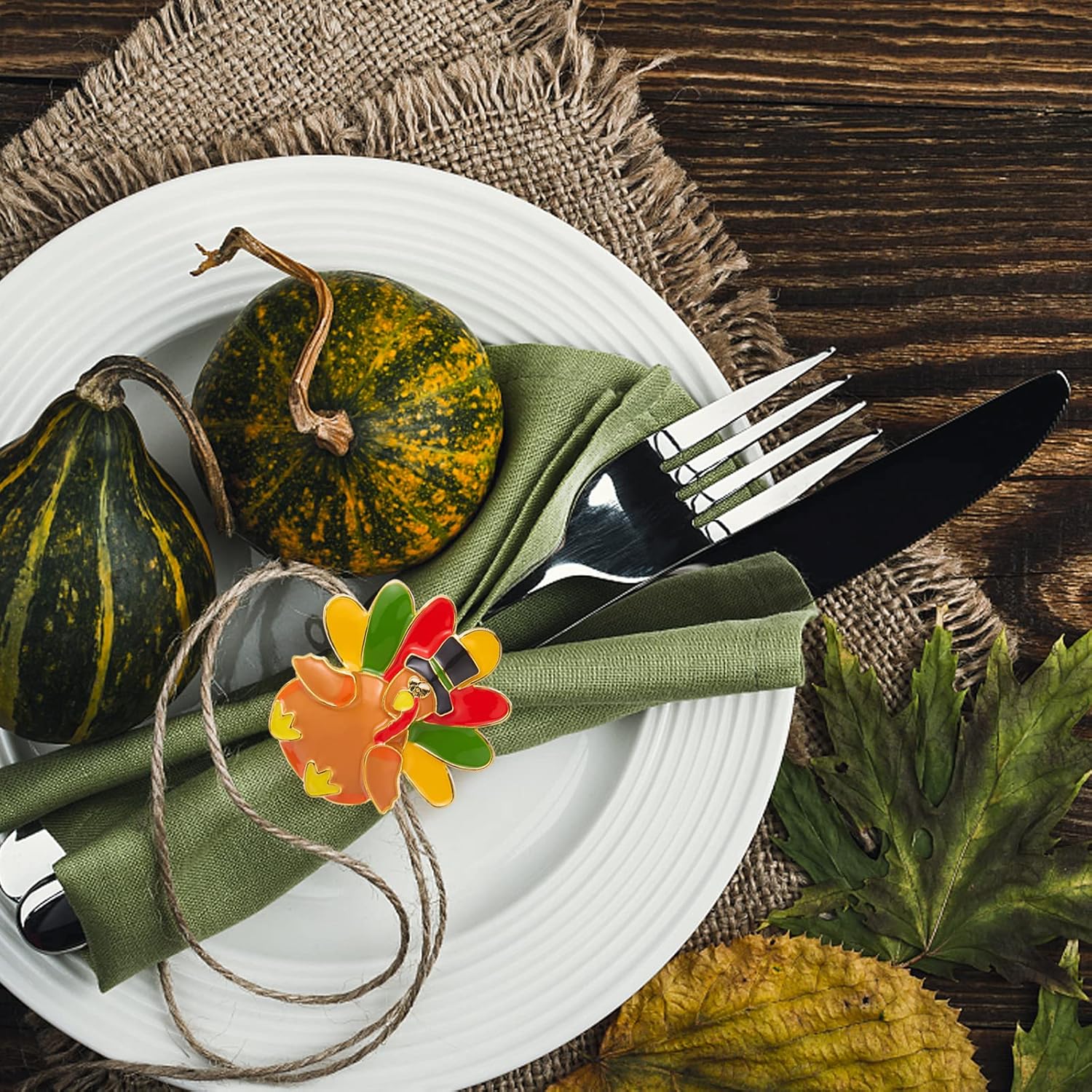 Halatool Thanksgiving Turkey Napkin Rings Set of 6, Alloy Fall Napkin Rings Dinner Tables Holders for Thanksgiving Weddings Holidays Gathering Dinner Party Decorations