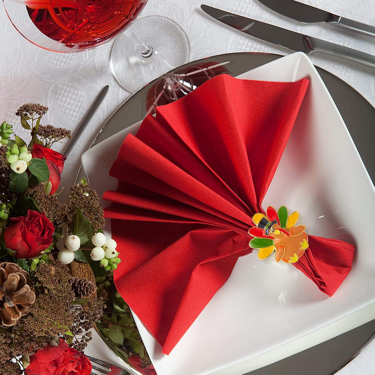 Halatool Thanksgiving Turkey Napkin Rings Set of 8, Alloy Fall Napkin Rings Dinner Tables Holders for Thanksgiving Weddings Holidays Gathering Dinner Party Decorations