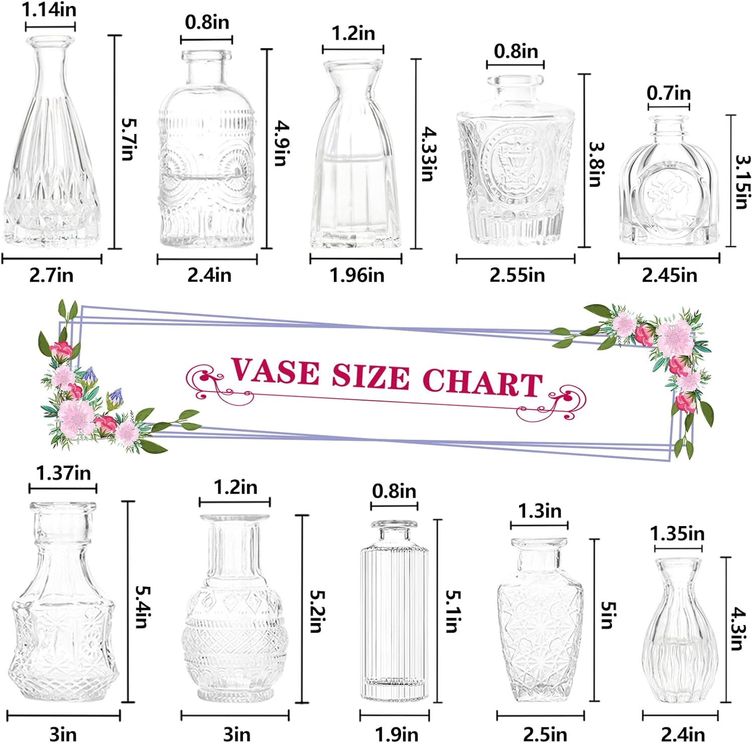 Bud Vases- Set of 10 Small Flower Glass Vases for Centerpieces, Cute Clear Crystal Bud Glass in Bulk, Mini Vintage Design for Wedding Decorations Party Table Flower Decor