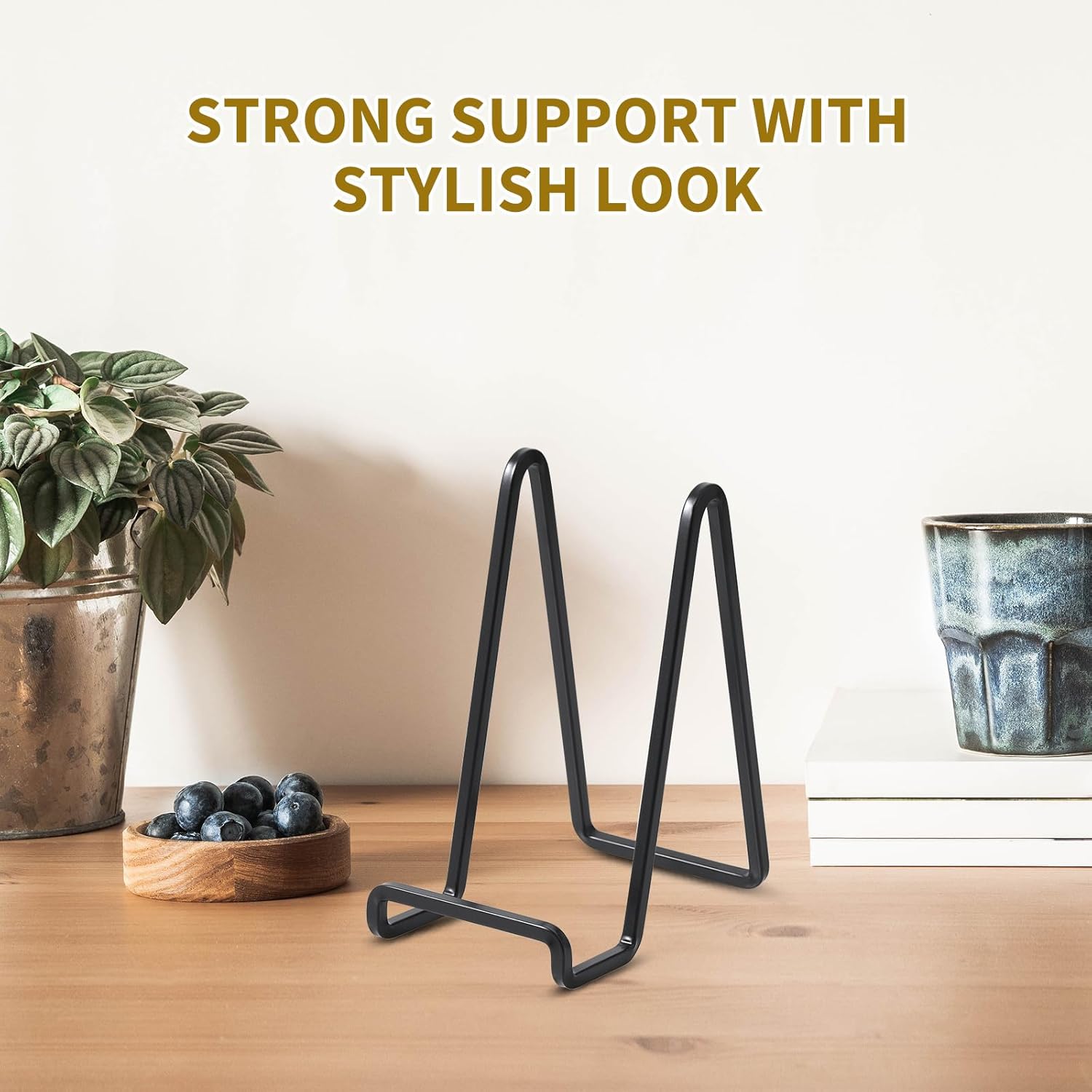 • Wide Applications - This metal stand with solid construction and pretty appearance is practical, durable and stable. It can be used as decorative plate stand | picture frame stand | photo holder | small book stand | plaque stand | postcard holder | card display stand | art display stand or easel stand for wedding sign. The ideas are endless, it depends on you!