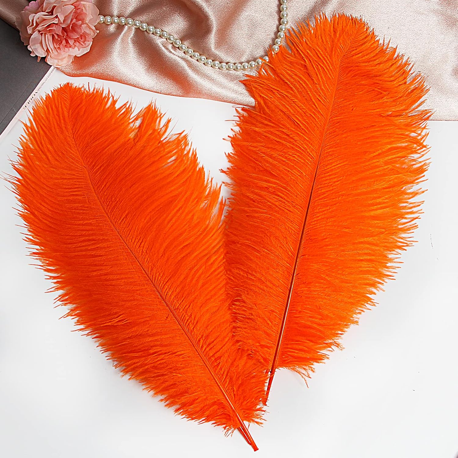 THARAHT Orange Ostrich Feathers 12pcs Large Natural Bulk 16-18Inch 40cm-45cm for Wedding Party Centerpieces Halloween and Home Decoration Feathers
