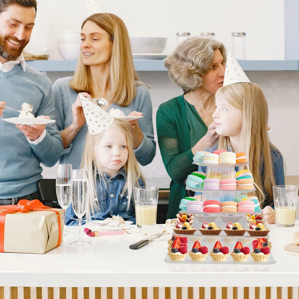 • 【5 Tiers Adjustable Macaron Stand】The stackable cookie cake rack can be used with just 2 or up to 5 tiers, can holds approximately 65-70 macaroons (varies depending on each macaroon size). Plastic cake display stand can also show your cupcakes, desserts, cookies, donuts, candies, fruits to your friends or families