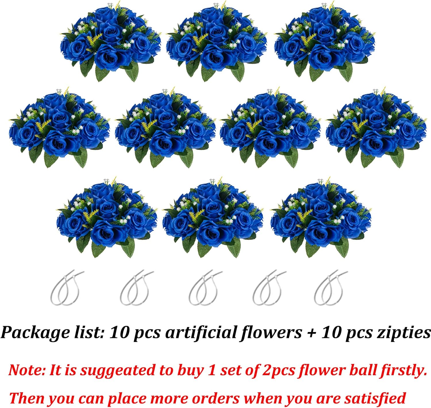 • DIY with Free Zip Ties: Only with zip ties in the parcel, you can put these flowers bases for rose together to make a large bunch or a kissing ball, as well as make a floral backdrop or decorate chairs or swag. You can lay flower arrangement onto the table merely, which will give you different modern free style. You can also put them onto bowls, candelabras or large martini glasses as flower balls for centerpieces, adding your home or office extra pop without cutting stems