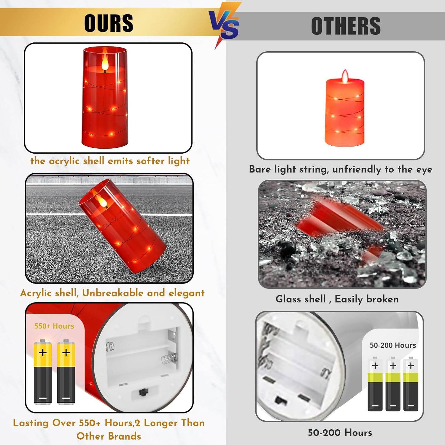 • 【Unbreakable Material, Realistic Appearance】flameless candles are made of high quality acrylic. Compared with glass radiance candles, acrylic shells make the battery candles stronger and lighter. Through the clear shell, you can see the real flame effect