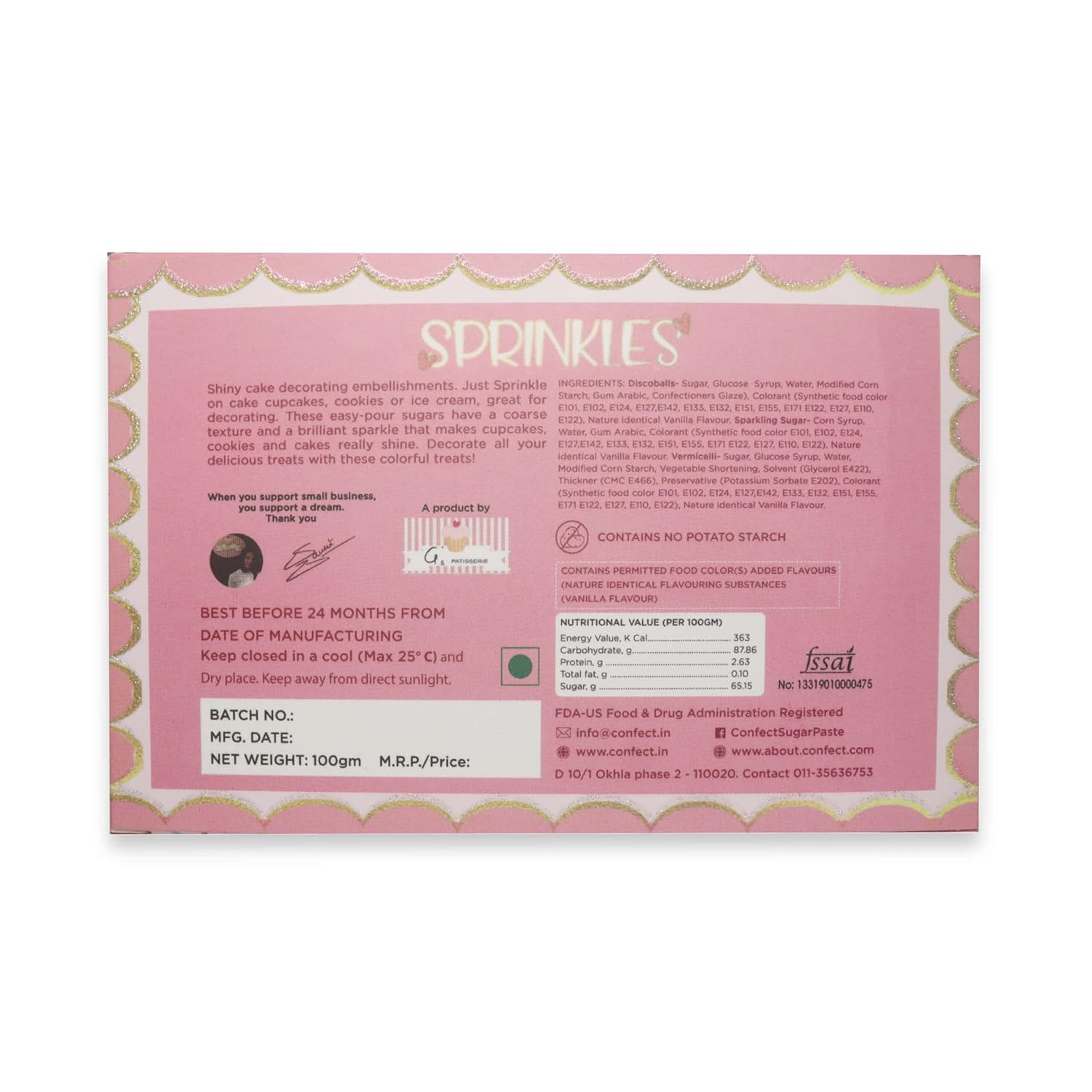 • Sprinkles are Perfect for all Celebrations - Birthdays, Anniversary, Graduation, Weddings & more Our Sprinkles are made with Pure Cane sugar only & contain no fillers All our Sprinkles are Handmade & Handcrafted