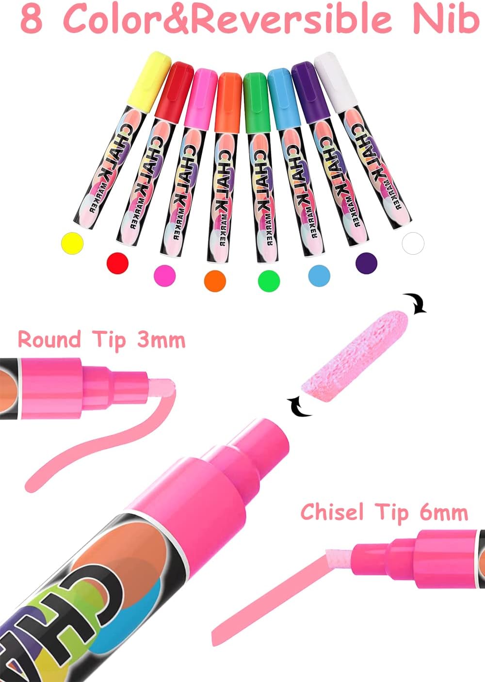 • Premium Set: The set includes a 7.5"*8.6" double-sided tabletop chalkboard and 8Pcs liquid chalk markers, so you don't have to spend any extra money to buy markers.
