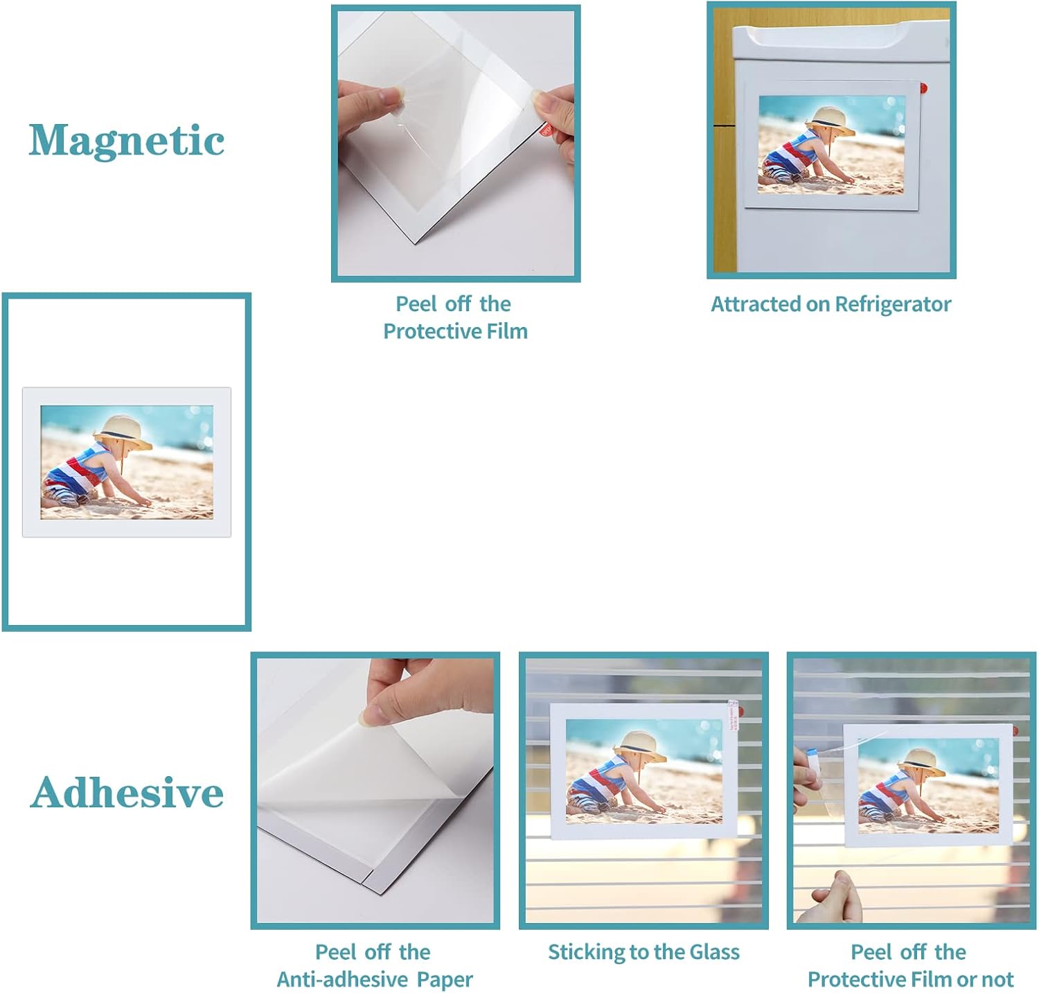 • White frames highlight your pictures, brighten your fridge, showcase your memories vividly. 12 packs of magnetic peel and stick frames meet your home decor and business needs at one time.