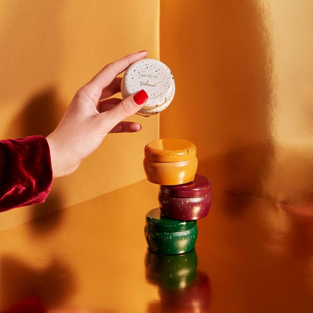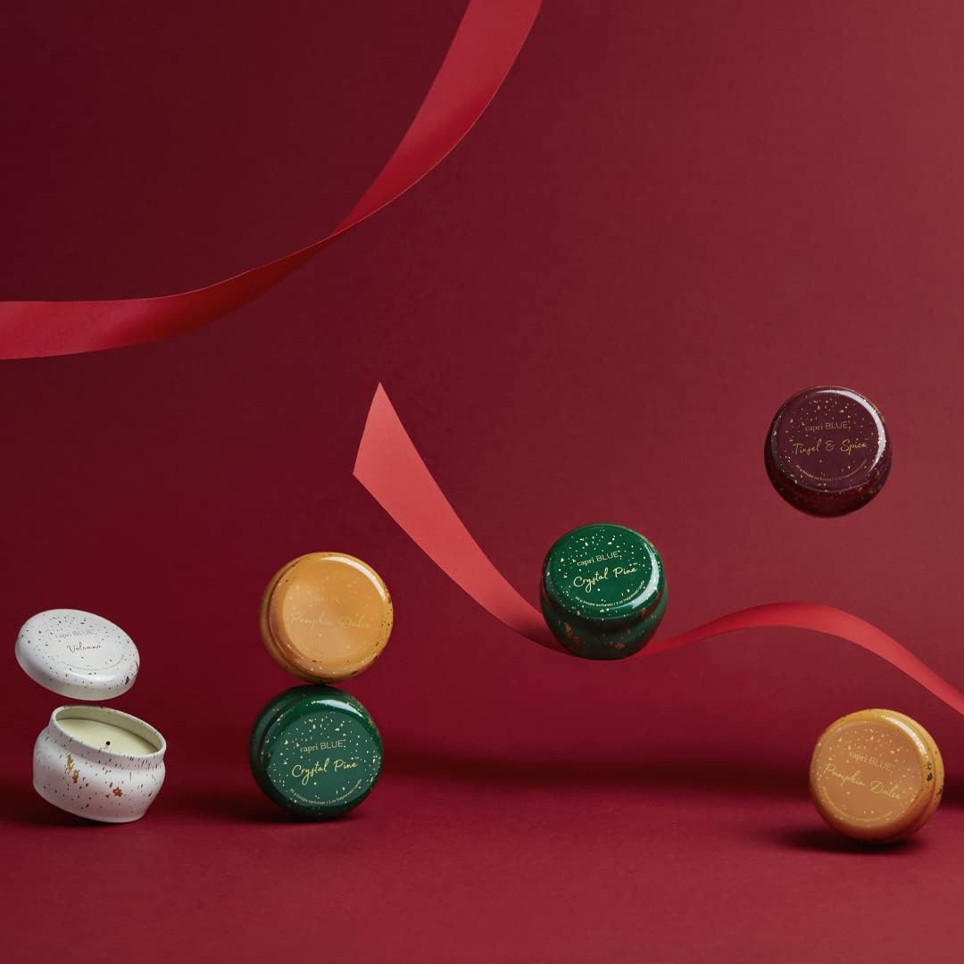 Capri Blue Glimmer Mini Tin - Crystal Pine Scented Candle with Mini Tin Candle Holder - Soy Wax Blend - Capri Blue Crystal Pine Emerald Green and Gold (3 oz)