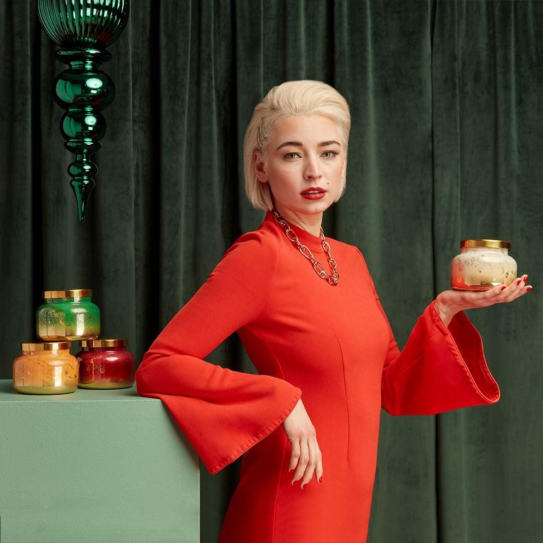 Capri Blue Glimmer Jar Candles - Luxury Holiday Scented Candles for Home - Long Lasting Soy Wax Blend - Scented Holiday & Home Decor - Crystal Pine Signature Jar (19 oz)