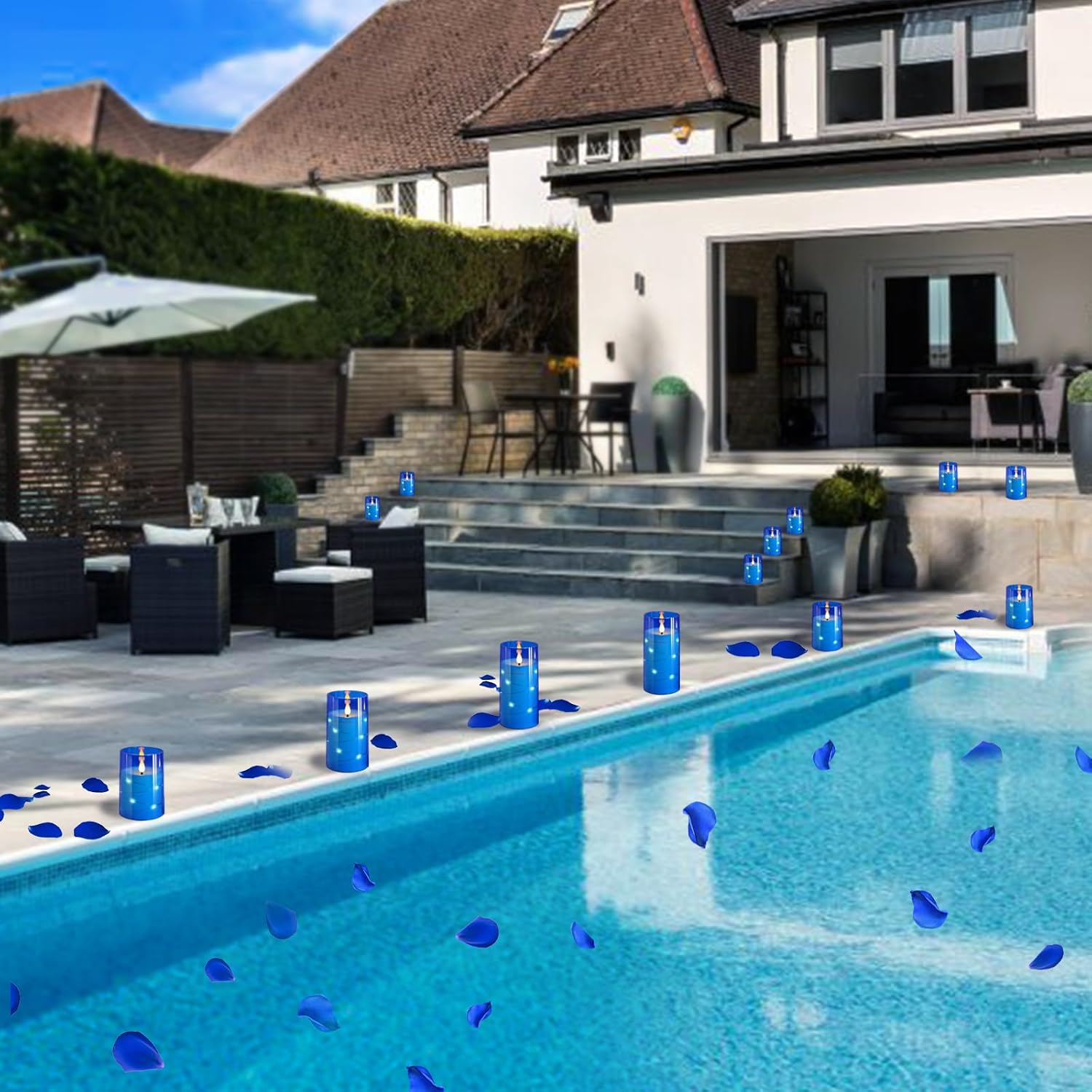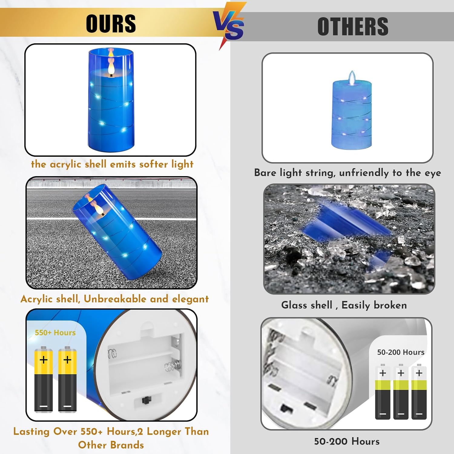NURADA 3"x6"Flickering Flameless Candles: Built-in Star String 3D Wick Battery Operated LED Candles with Remote and Timer for Wedding Valentine's Day Decor, Blue 2 Pack