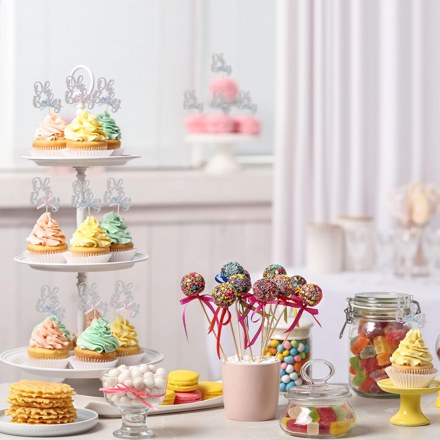 • 💗💗Package included: 36Pcs Silver Oh Baby with Bowknot Cupcake Toppers. They are assembled in advance, you can decorate your cake directly, which make your cake more interesting.